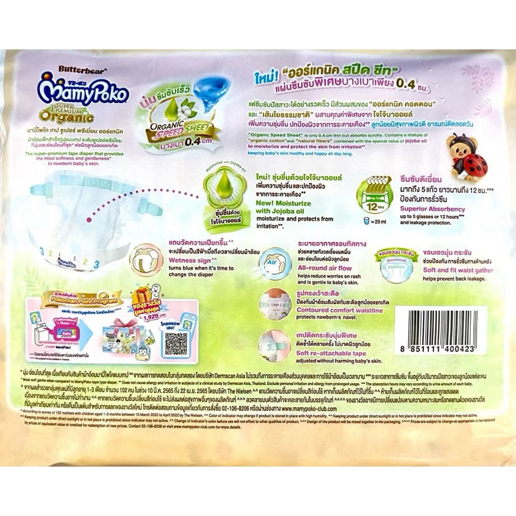 MamyPoko โฉมใหม่ นิวบอน Organic แบบเทป 24 ชิ้น(1ห่อ)