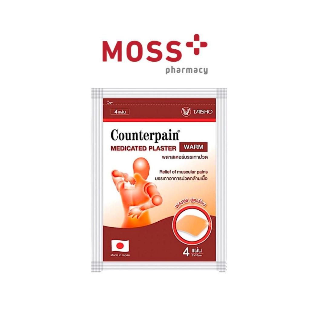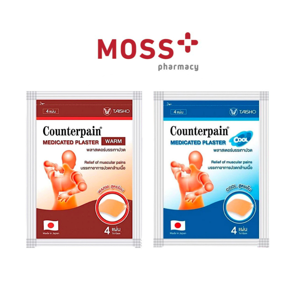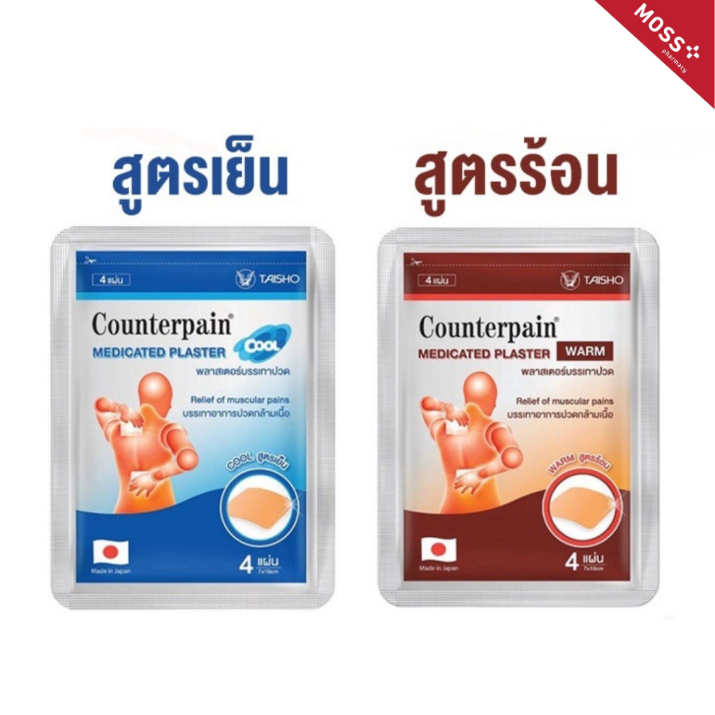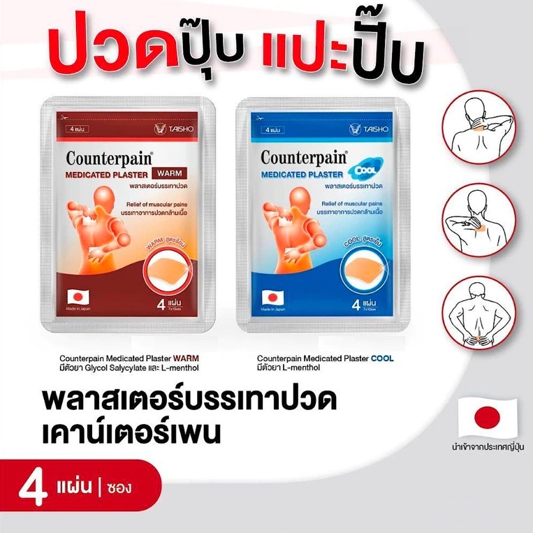 COUNTERPAIN MEDICATED PLASTER แผ่นแปะแก้ปวด คลายกล้ามเนื้อ (สูตรร้อน/สูตรเย็น) บรรจุ 4 แผ่น/ซอง