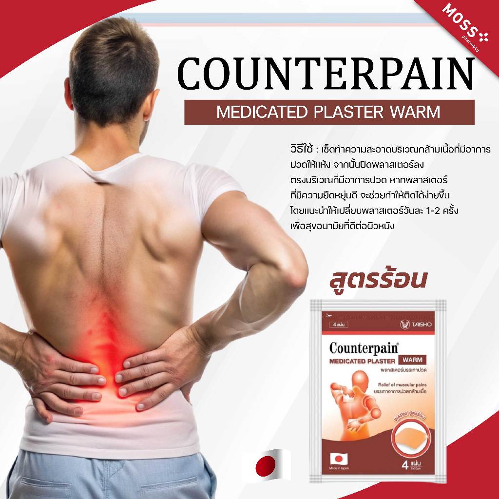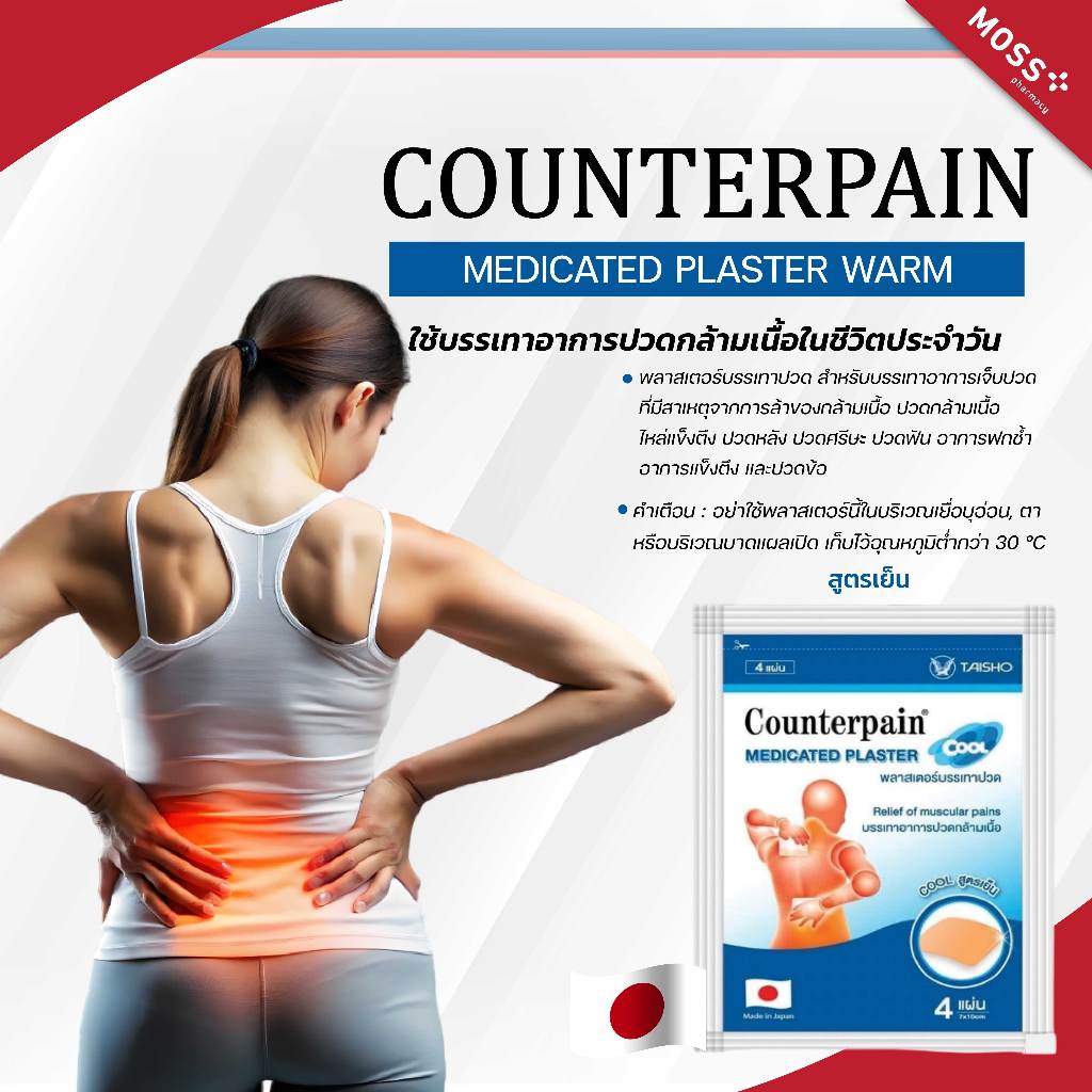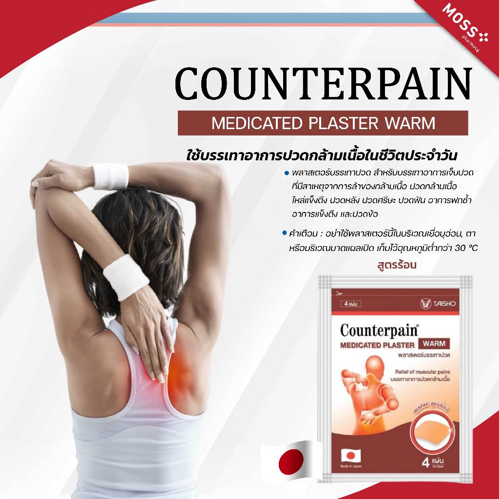 COUNTERPAIN MEDICATED PLASTER แผ่นแปะแก้ปวด คลายกล้ามเนื้อ (สูตรร้อน/สูตรเย็น) บรรจุ 4 แผ่น/ซอง