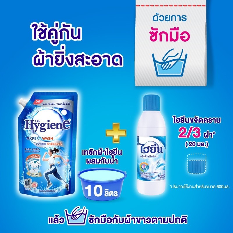 Hygiene ไฮยีน ผลิตภัณฑ์ซักผ้าขาว 1500 มล. คราบสกปรก ฝังแน่น รอยเปื้อน ลดกลิ่นอับ ขจัดเชื้อโรค