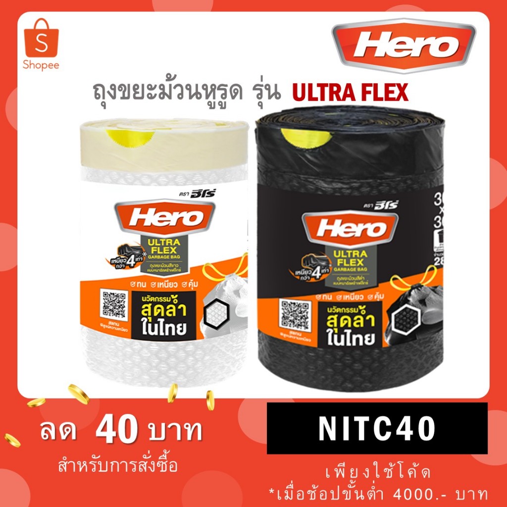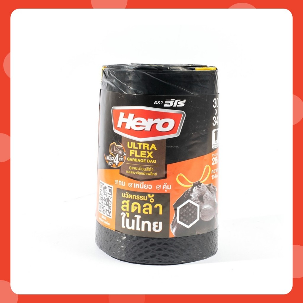 HERO ถุงขยะม้วนหนาพร้อมหูรูด ขนาด 30 X 34 นิ้ว สีดำ รุ่น ULTRA FLEX หนา 31 ไมครอน