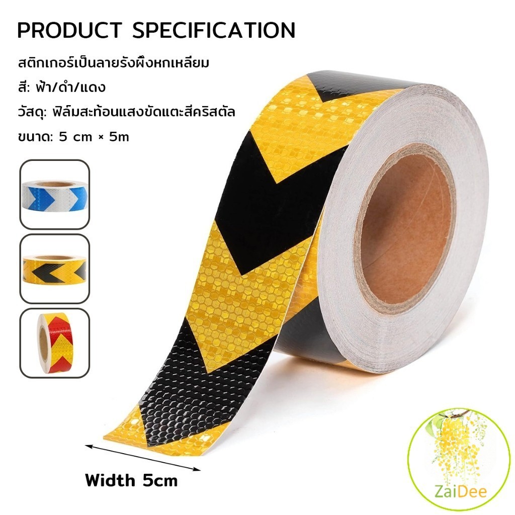 สติ๊กเกอร์สะท้อนแสง ติดรถ 5cm×5m กันน้ำ กันฝน ติดทนนาน ติดแน่น เทปกาวสะท้อนแสง ลายลูกศร Reflective Tape
