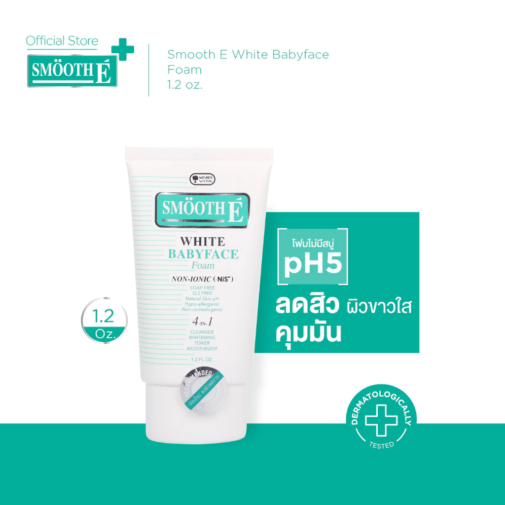 Smooth E White Babyface Foam 1.2 Oz. สมูทอี ไวท์ เบบี้เฟส โฟม pH5 Vit C&E ผิวกระจ่างใส สำหรับผิวหมอง