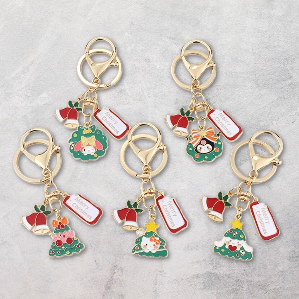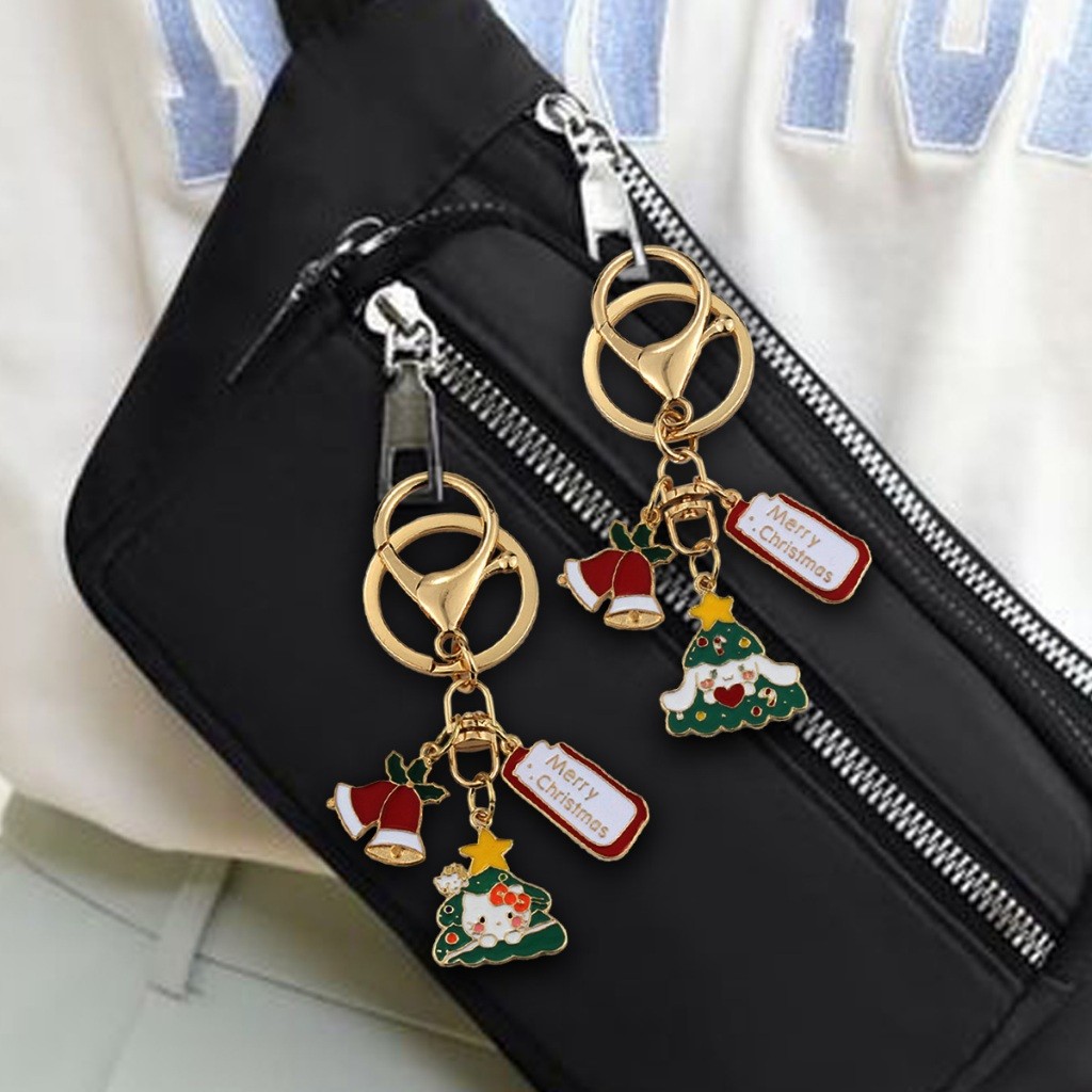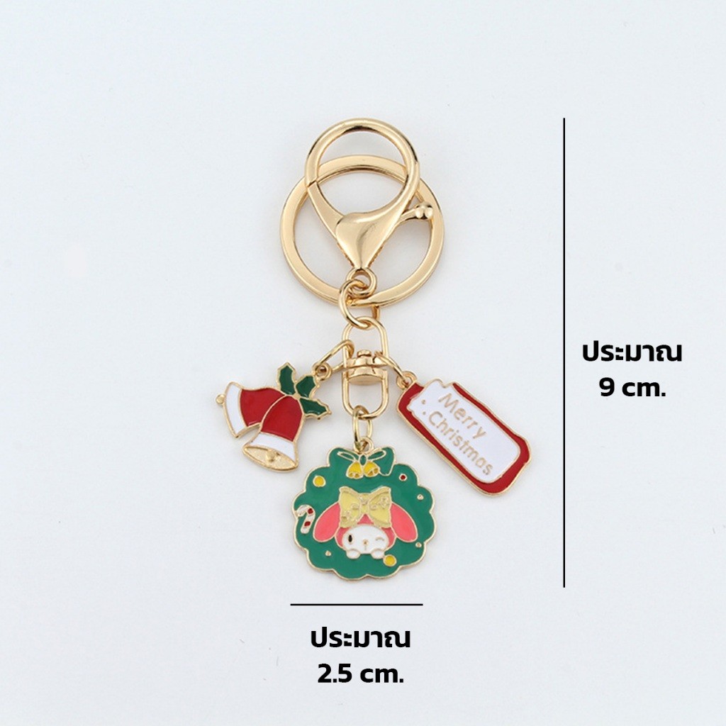 พวงกุญแจ Sanrio คริสต์มาส อะไหล่สีทอง Merry Christmas กระดิ่งสีแดง