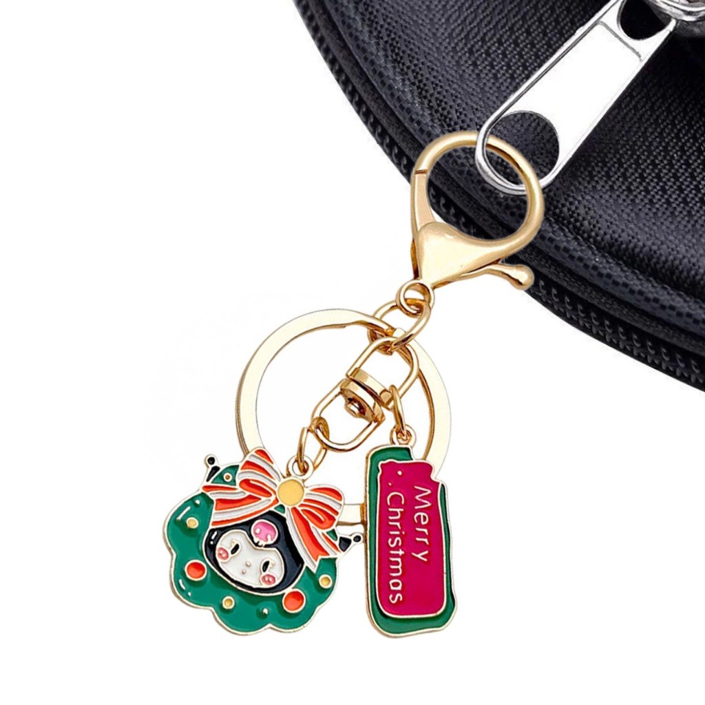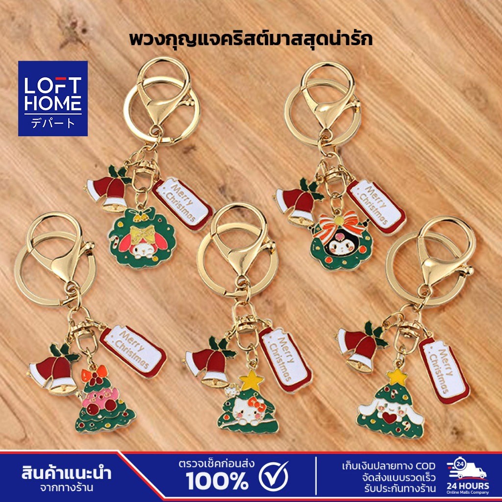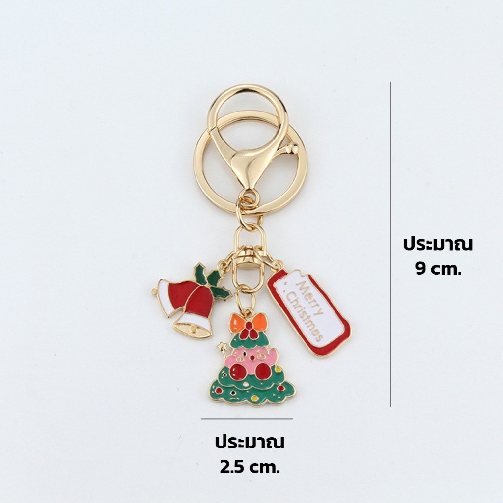 พวงกุญแจ Sanrio คริสต์มาส อะไหล่สีทอง Merry Christmas กระดิ่งสีแดง