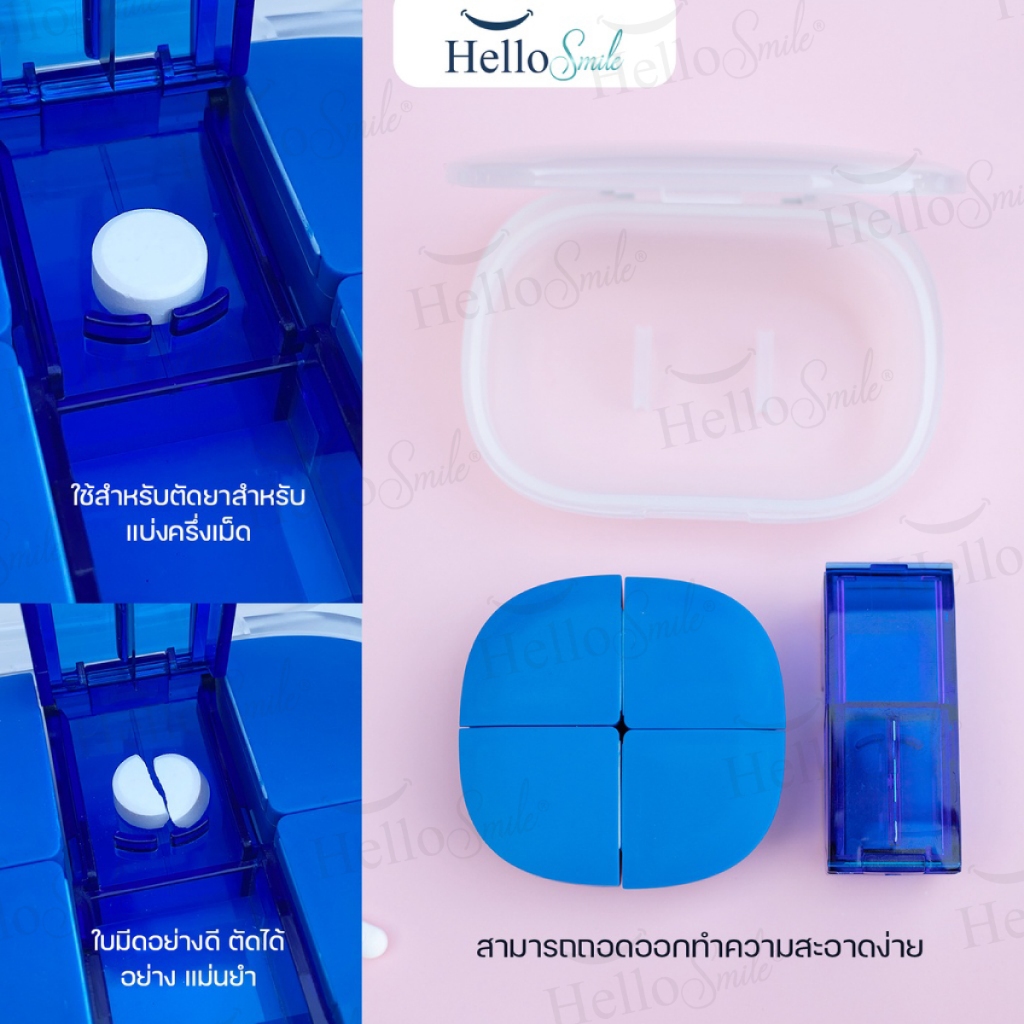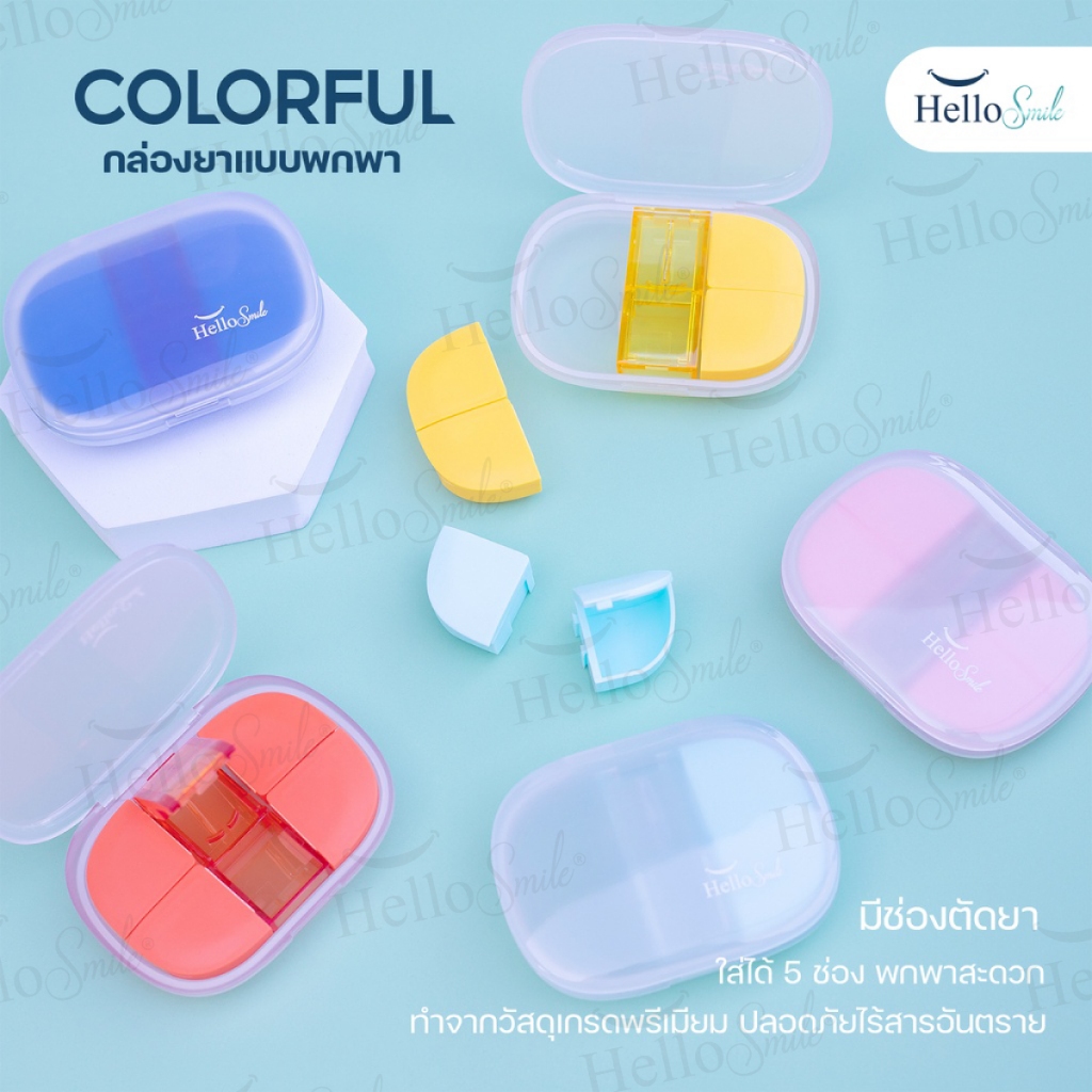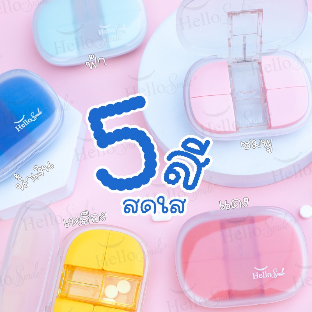 HelloSmile | Medicine box กล่องใส่ยา พกพา ที่ตัดยา ที่ตัดแบ่งเม็ดยา ตลับยาพกพา ตลับใส่ยา ตลับใส่วิตามิน กล่องยา | 5 ช่อง