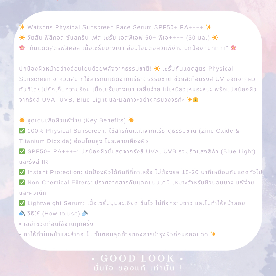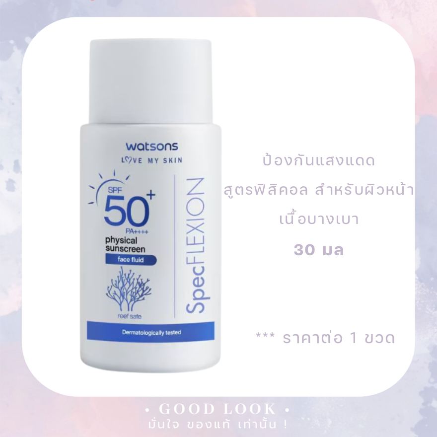 หมดอายุปี 27-28✨WATSONS Physical Sun Screen Face Fluid SPF50+PA++++ 30 ML✨Face Fluid ขวด