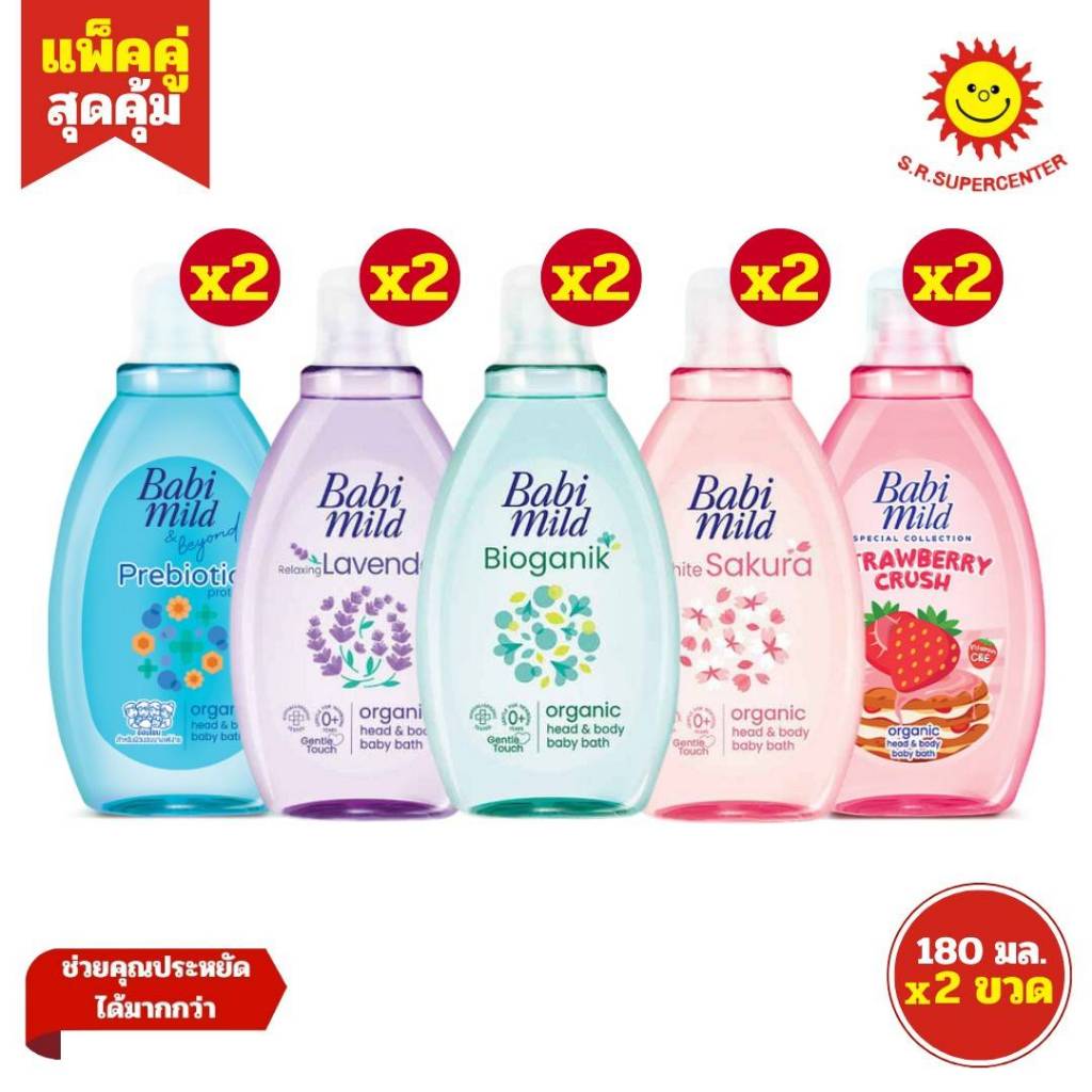 [ แพ็คคู่ ] Babi mild Baby Bath เบบี้มายด์ เบบี้ บาธ สบู่เหลว ขนาด 180 มล. (แพ็ค2ขวด) คละสูตร