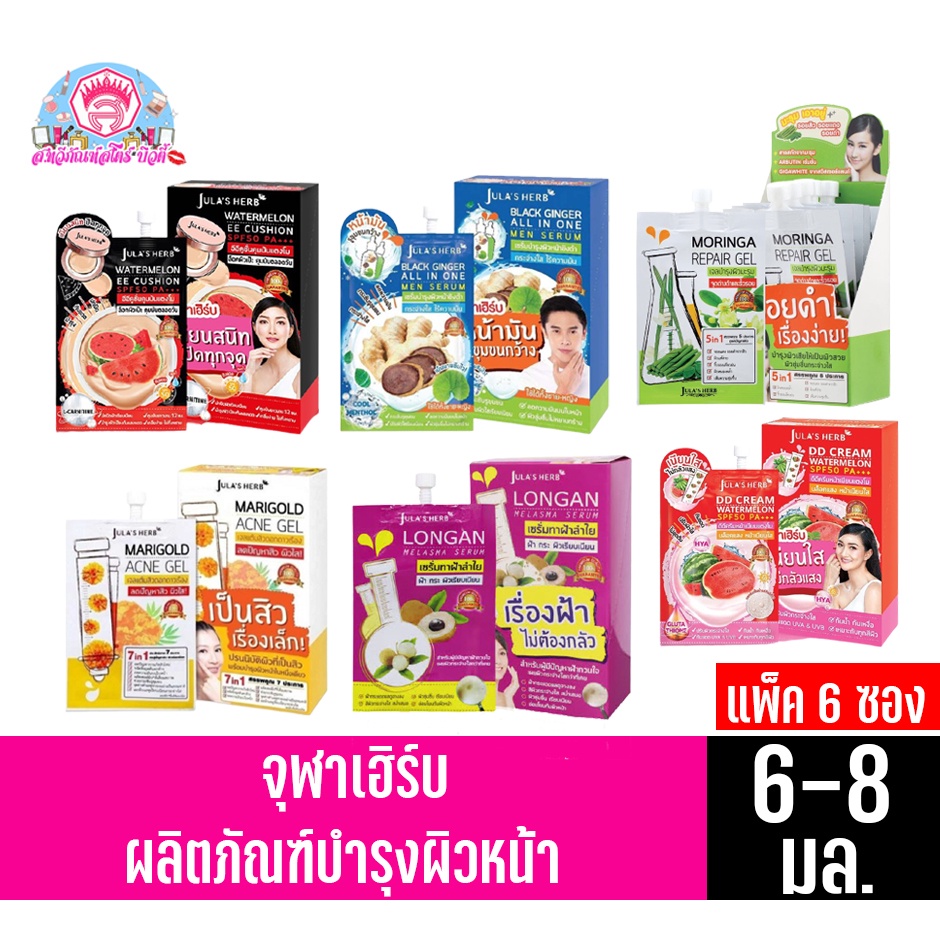 (ครีมซองเซเว่น) จุฬาเฮิร์บ ผลิตภัณฑ์บำรุงผิวหน้า ขนาด 6-8 มล. ทั้ง 6 สูตร****ยกกล่องx6ซอง****
