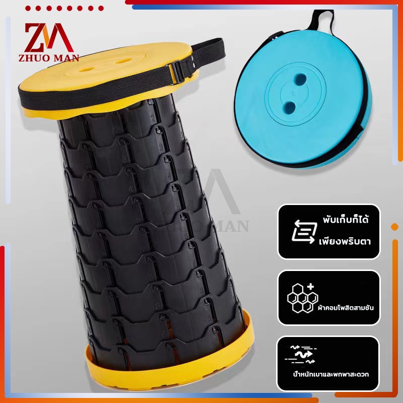 เก้าอี้ตกปลา ปรับระดับได้ น้ำหนักเบา เล็กกระทักรัด พกพาสะดวก มีสายคล้องมือ ยืดได้สูงสุด 46cm รองรับน้ำหนักได้ 100