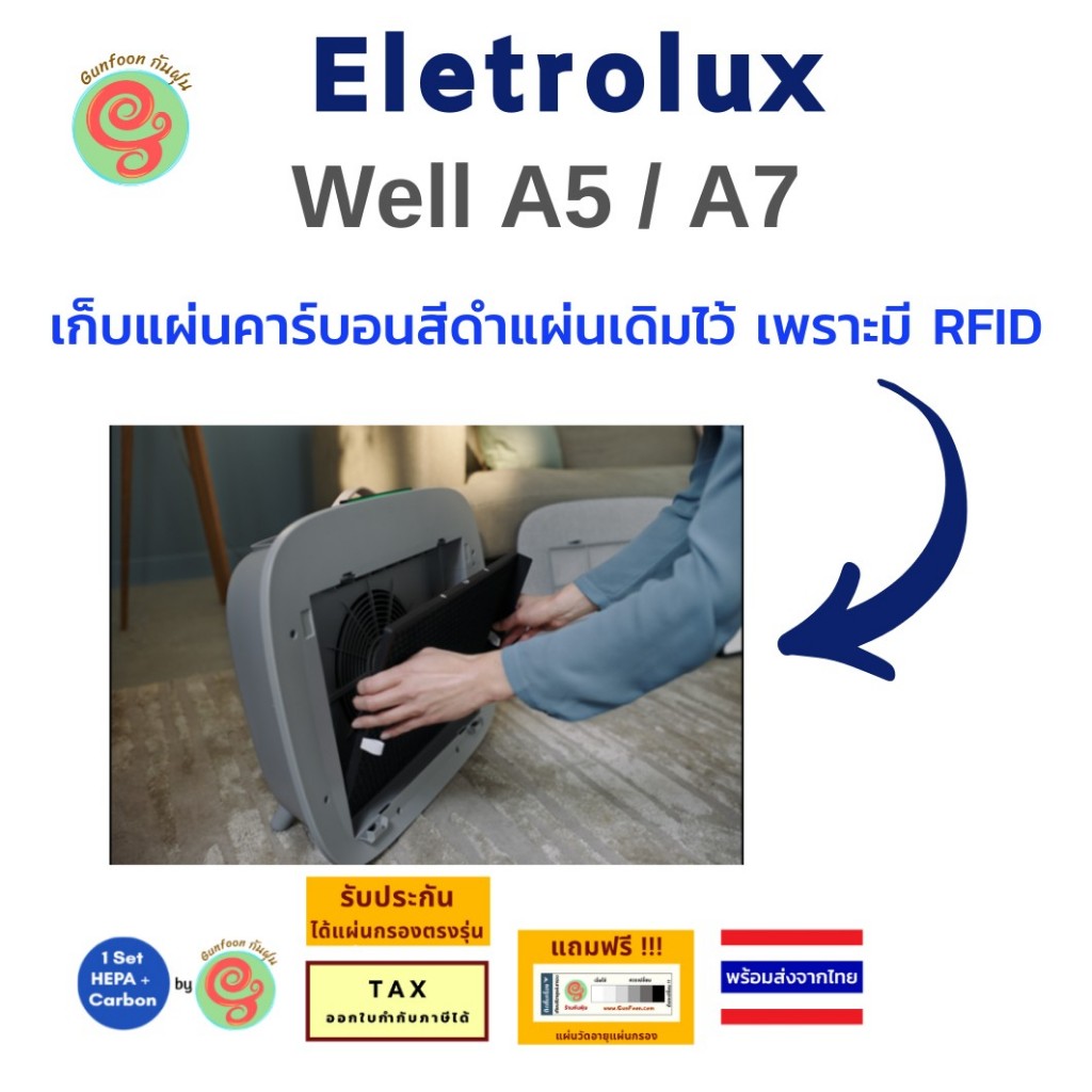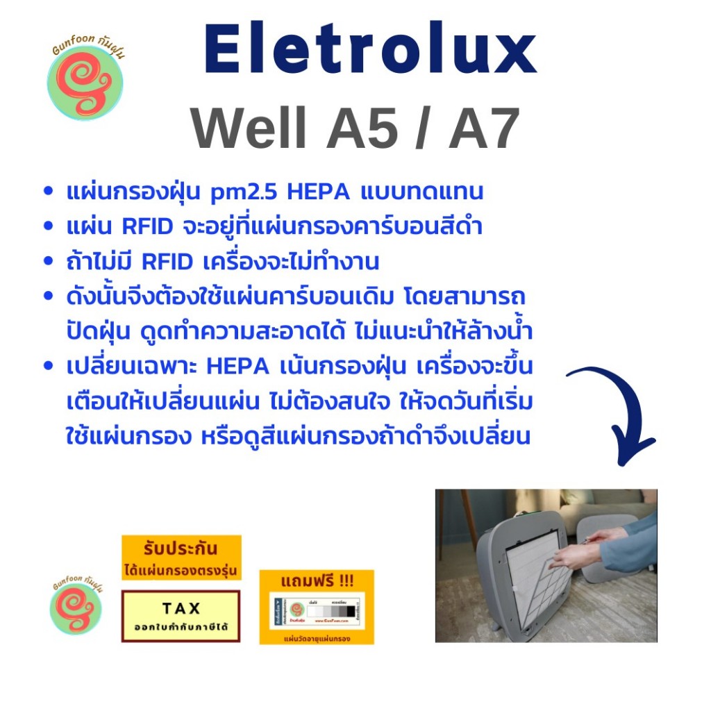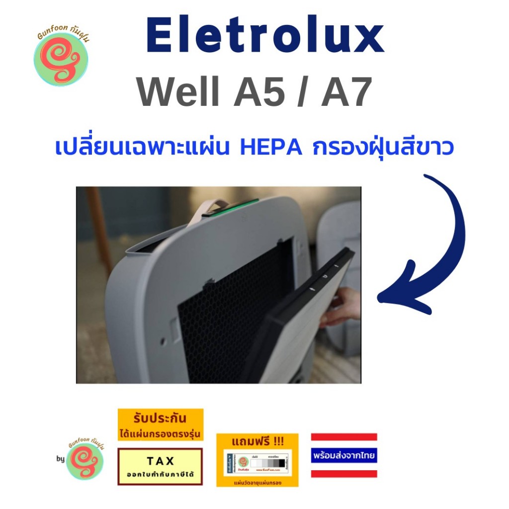 แผ่นกรอง เครื่องฟอกอากาศ ELECTROLUX รุ่น Well A5 WA51-305WT และ A7 WA71-305DG ทดแทนไส้กรอง EFWCLN3