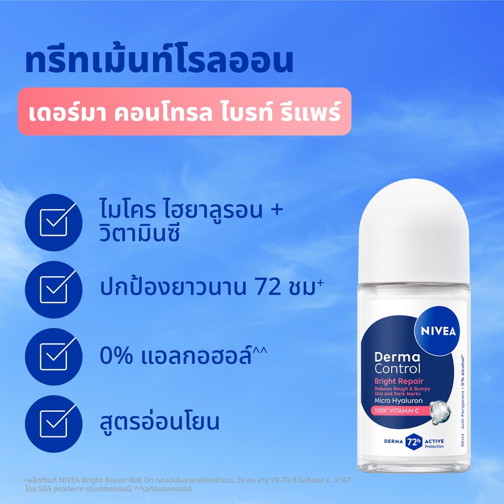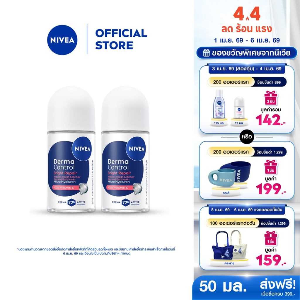 นีเวีย เดอร์มา คอนโทรล ไบรท์ รีแพร์ โรลออน 50 มล. NIVEA 2ชิ้น ครีมรักแร้
