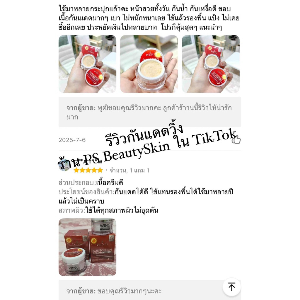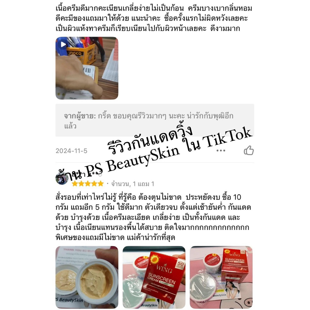 กันแดดวิ้ง 1 แถม 1 +ของแถมเพิ่มอีก1ชิ้น ร้าน PS Beautyskin (ร้านขายดีใน Tiktok) ขนาด 10กรัม ตัวแถม 5 กรัม *ไม่มีกล่อง *