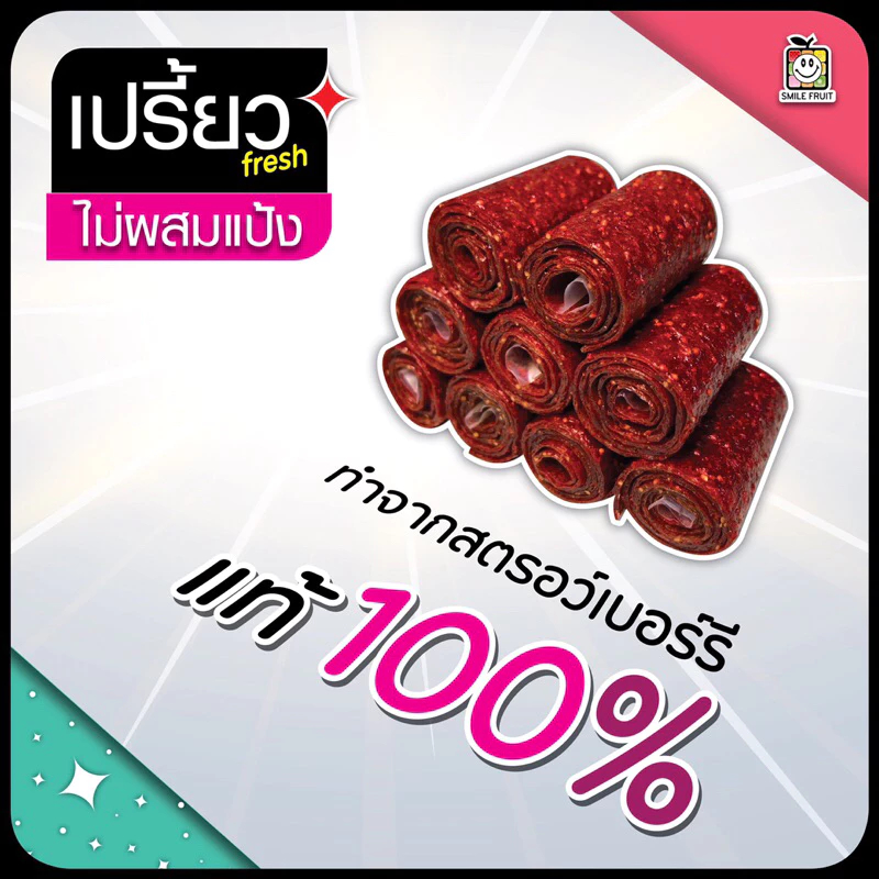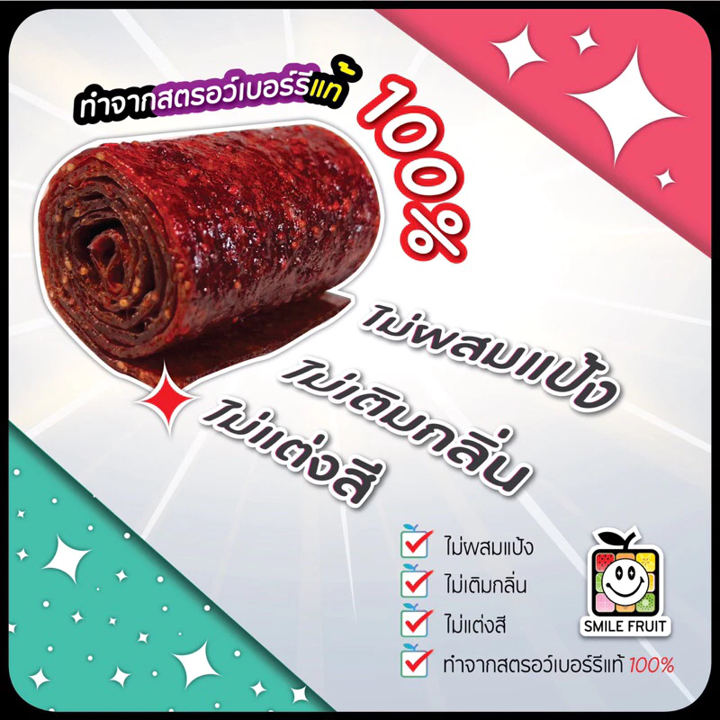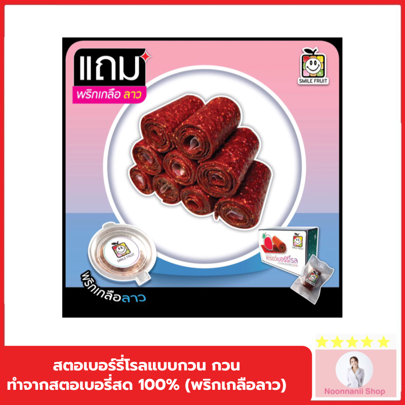 สตอเบอร์รี่โรลแบบกวน กวน ทำจากสตอเบอรี่สด 100% (พริกเกลือลาว)