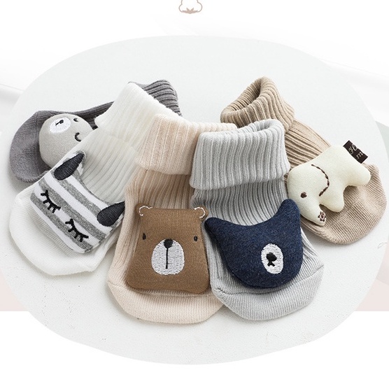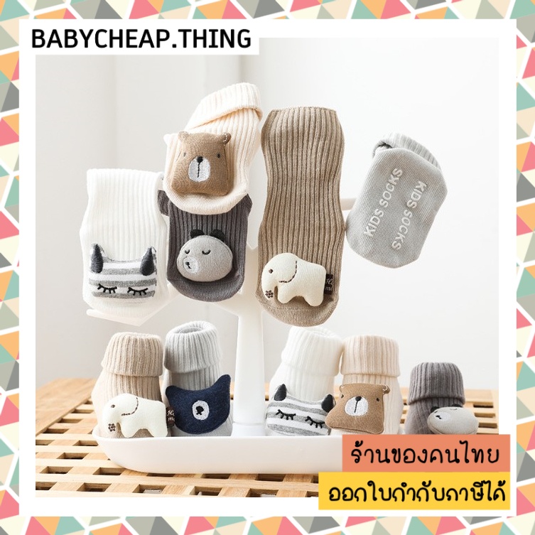 ☆ ถุงเท้าเด็ก (sk30) - ถุงเท้าผ้านุ่ม พับข้อได้ ติดตุ๊กตานูน