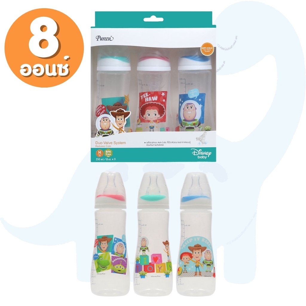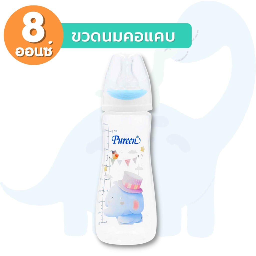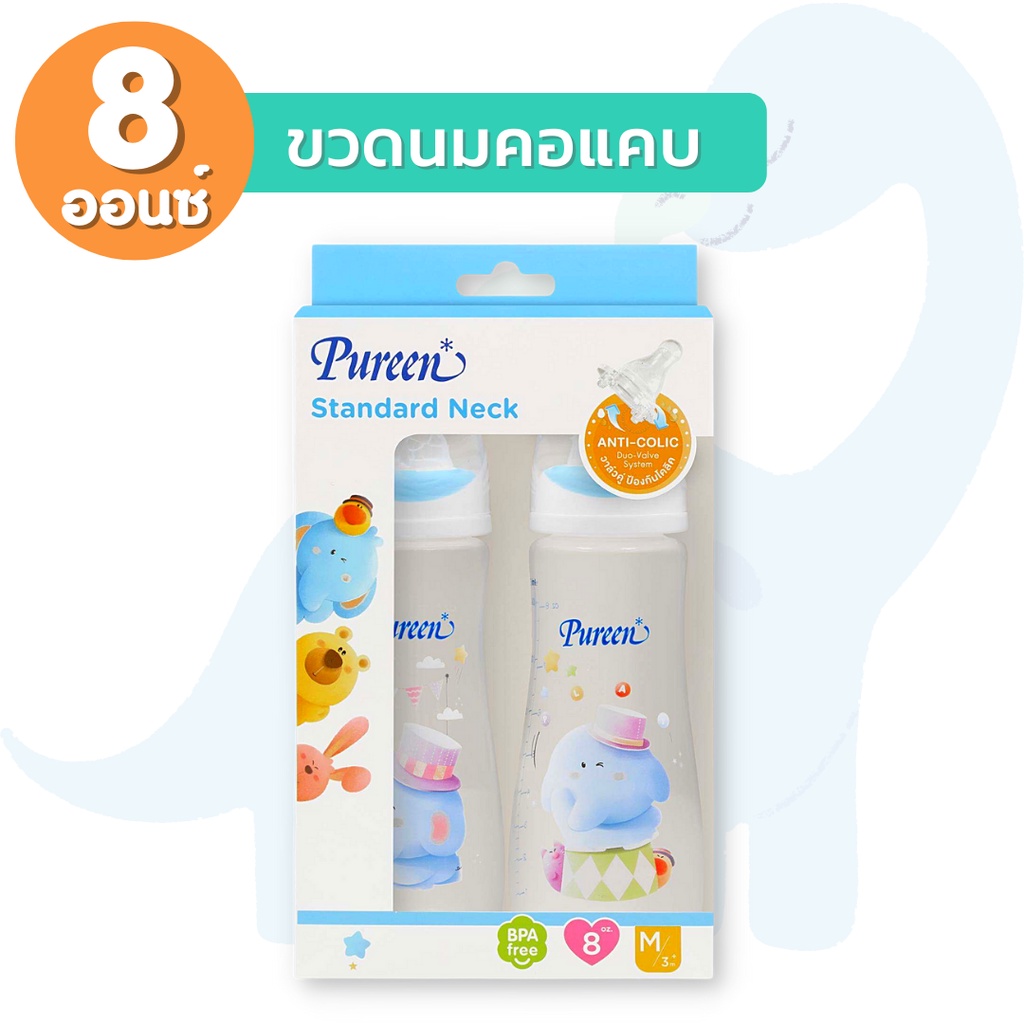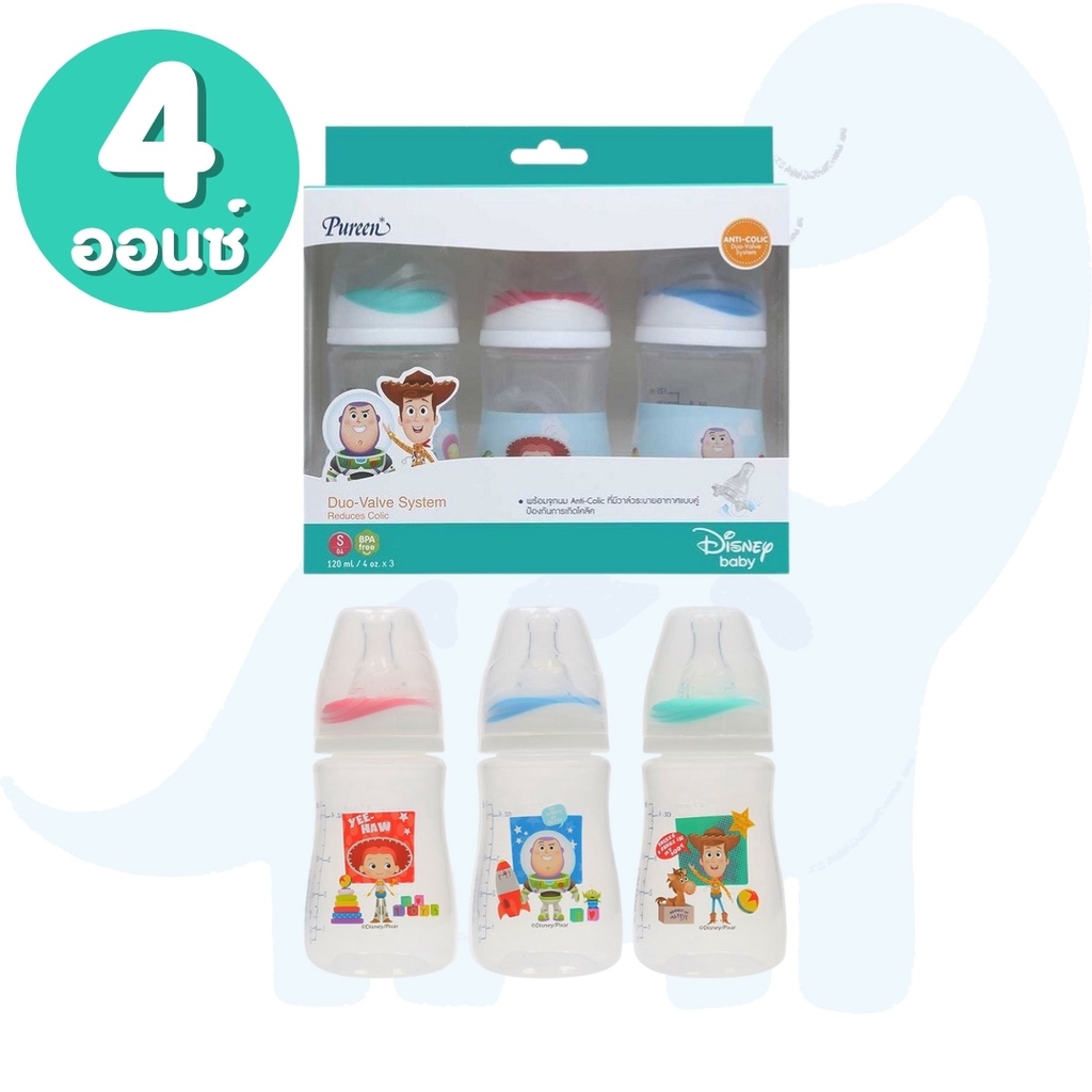 Pureen เพียวรีน ขวดนมคอกว้าง ขวดนมคอแคบ ลายการ์ตูน (ขนาด 4/8 ออนซ์) พร้อมจุกนมลดอาการโคลิค