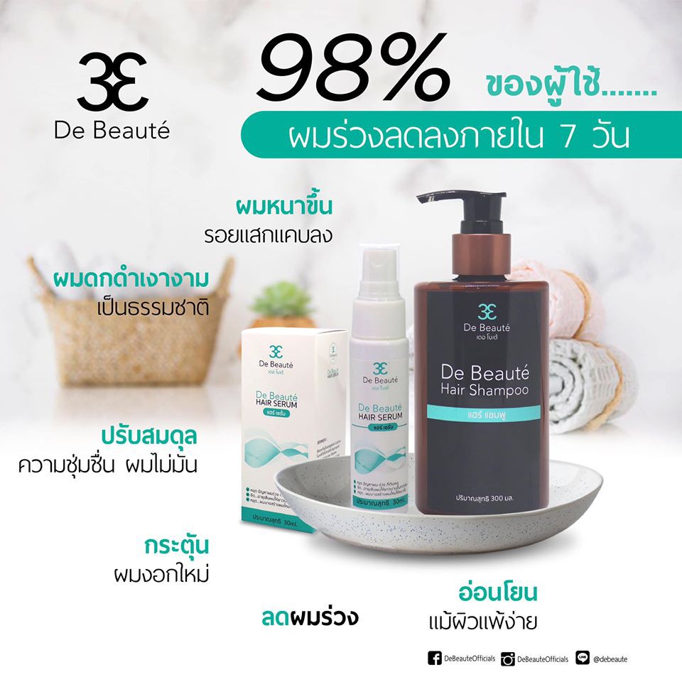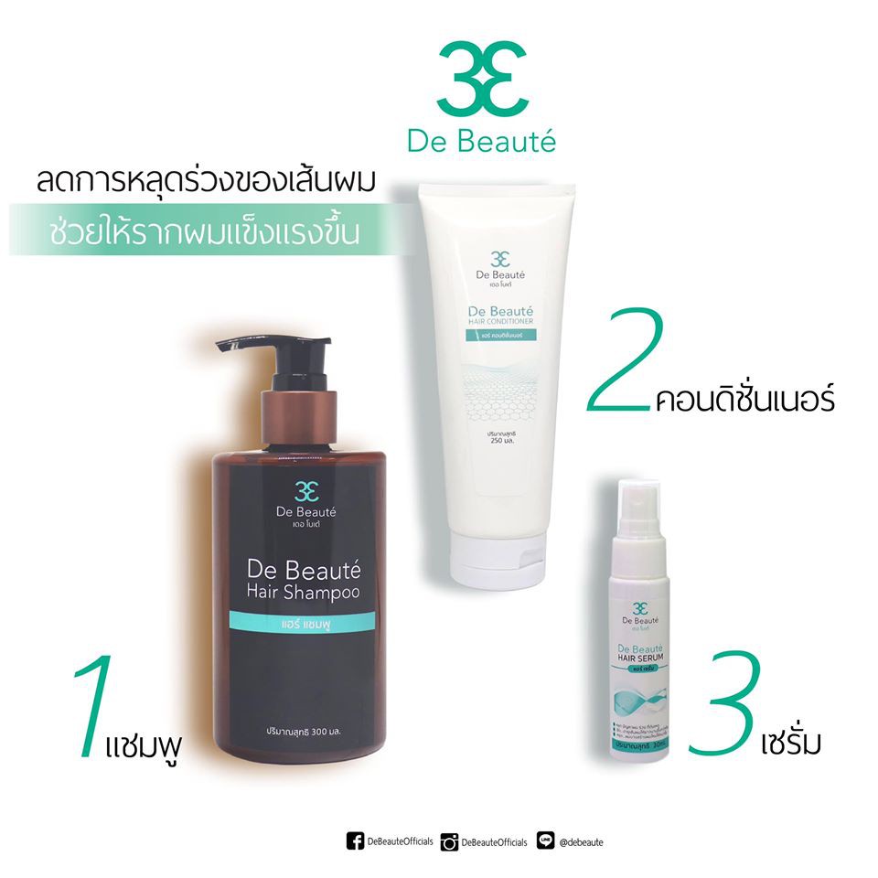 De Beauté Hair Shampoo / Conditioner / Serum เดอ โบเต้ แชมพู ครีมนวด เซรั่ม ลดผมหลุดล่วง