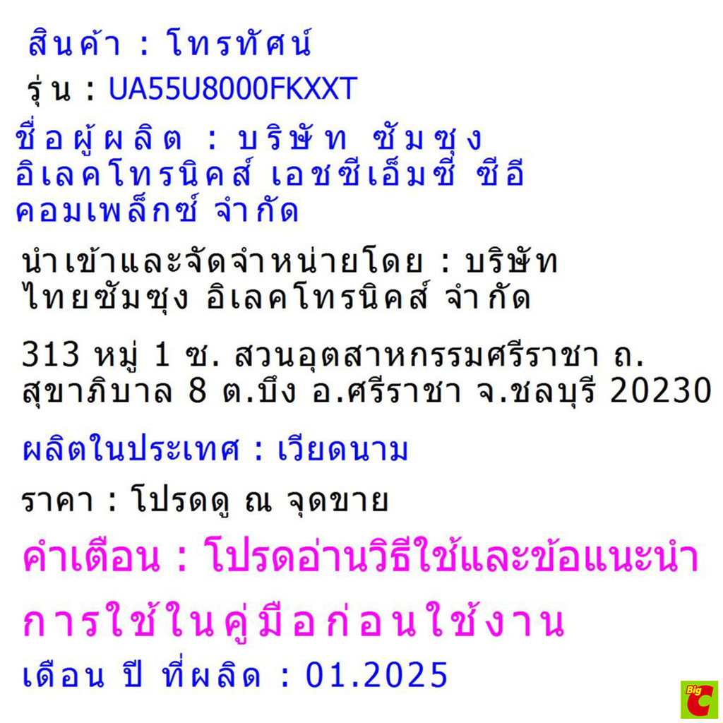 ซัมซุง สมาร์ททีวี Crystal UHD 4K รุ่น UA55U8000FKXXT ขนาด 55 นิ้ว สี Titan Gray (รุ่นใหม่ ปี 2025)