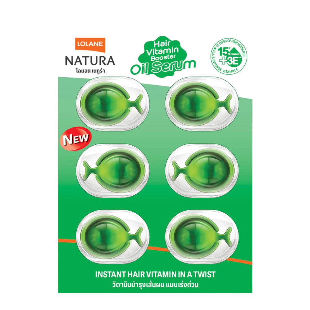 (แผง) Lolane Natura Vitamin Booster Oil Serum โลแลน เนทูร่า แฮร์ ไวตามิน บูสเตอร์ ออยล์ เซรั่ม 1 มล.x 6 เม็ด