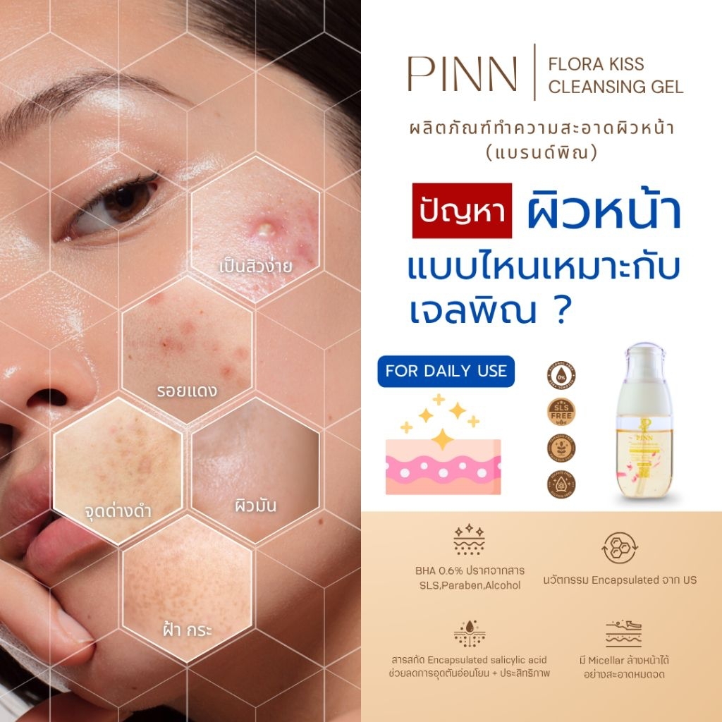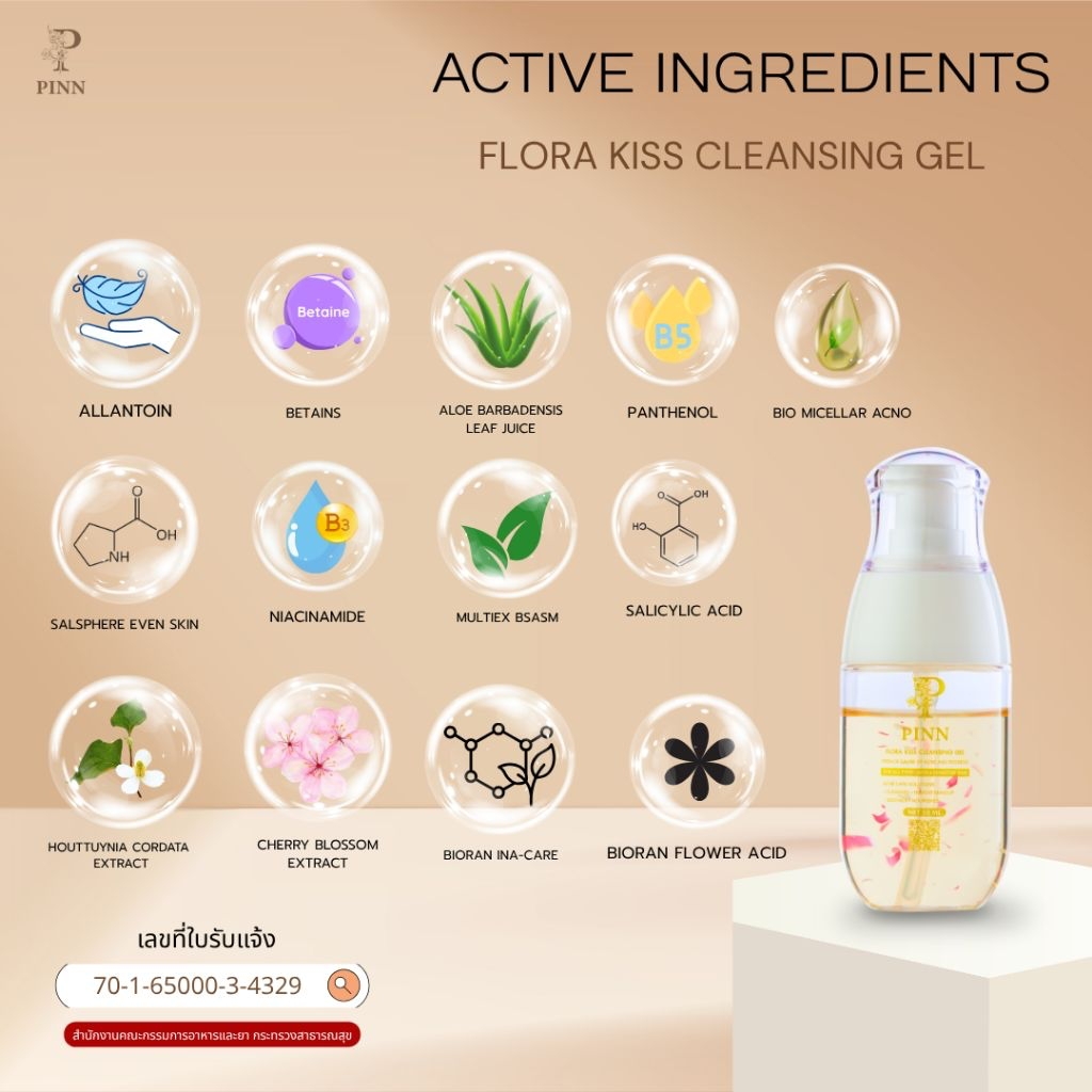 PINN Flora Kiss Cleansing Gel เจลล้างหน้าพิณ ขนาด 50 ml