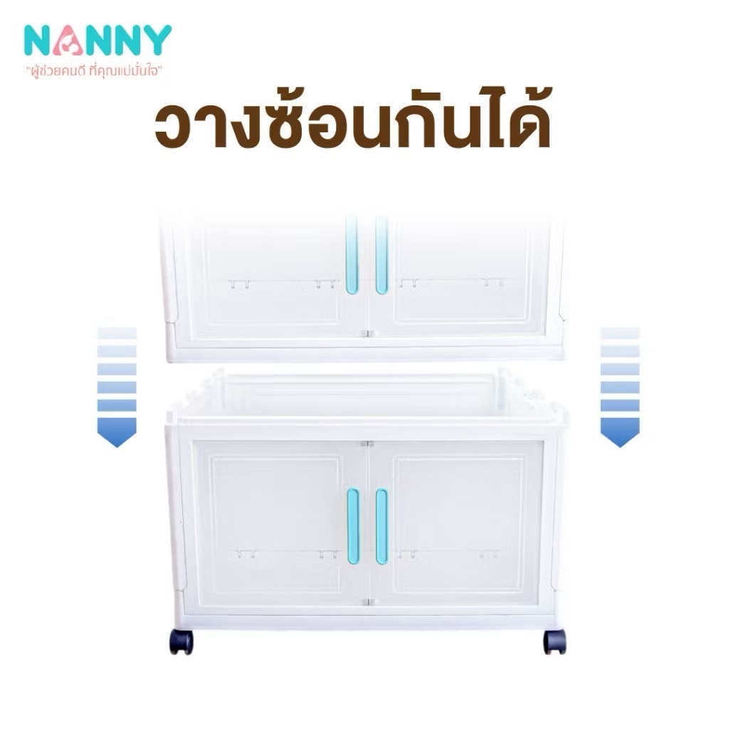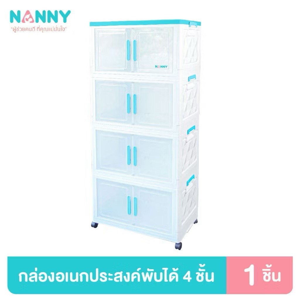 Nanny ตู้เก็บของ 4 ชั้น พับได้ ใบใหญ่ มีล้อ ฝาเปิดปิดแบบแม่เหล็ก