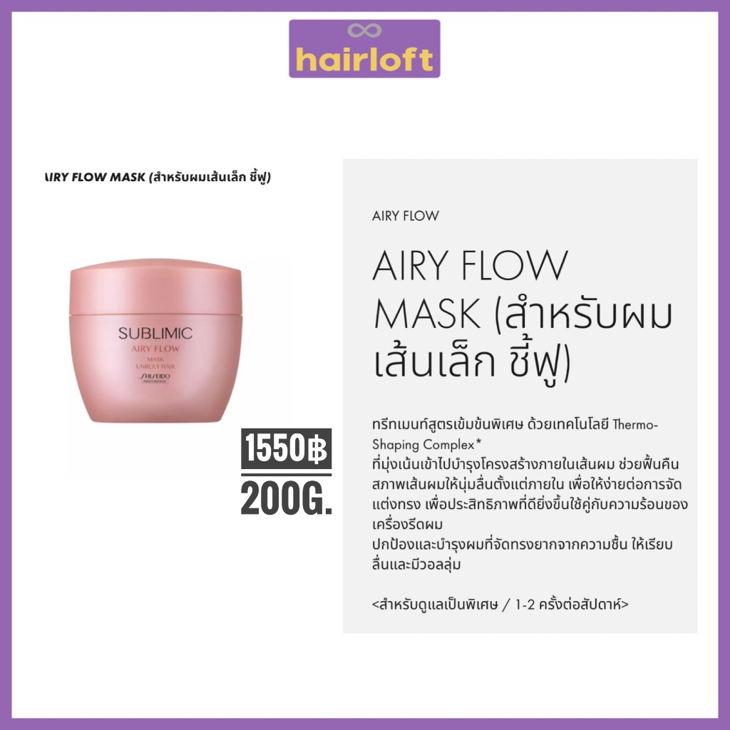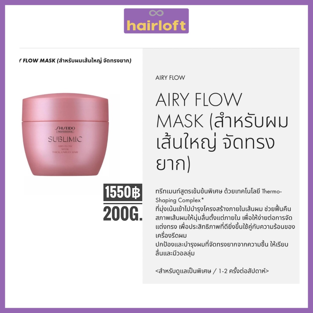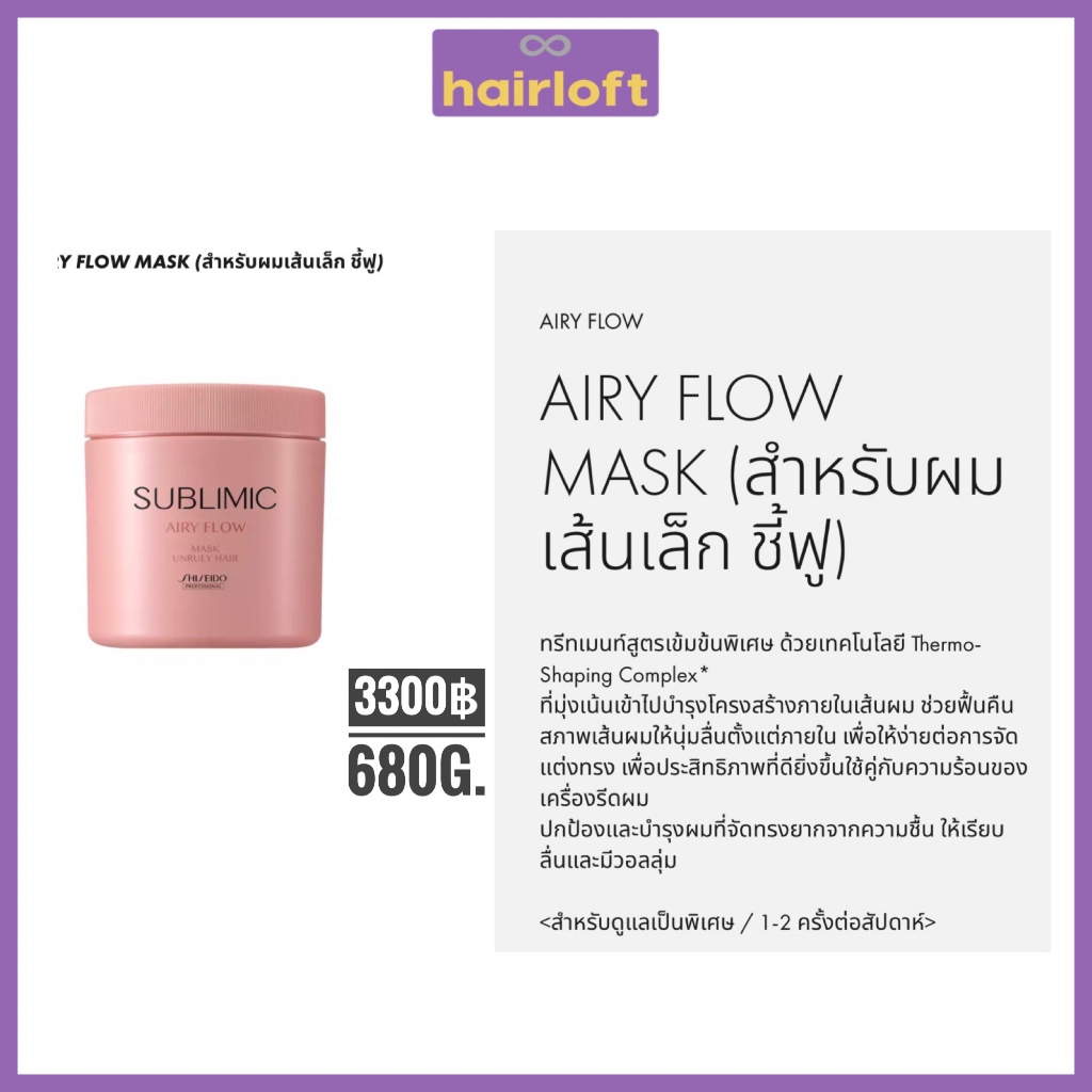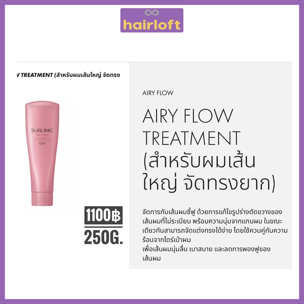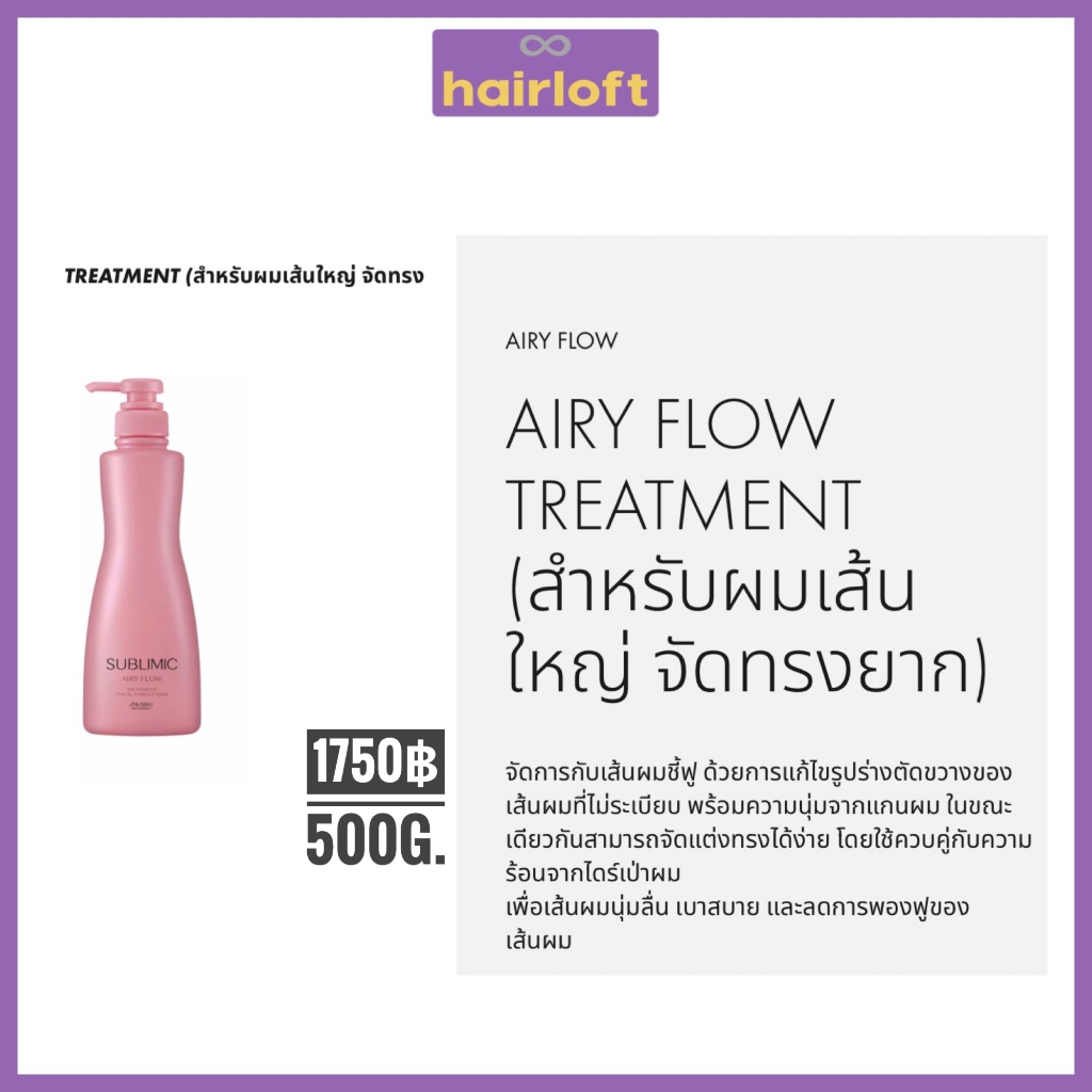 SHISEIDO SUBLIMIC AIRY FLOW ชิเซโด้ ซับลิมิก แอรี่ โฟลว์ สำหรับผมแห้ง ชี้ฟู จัดทรงยาก หยาบ แข็ง