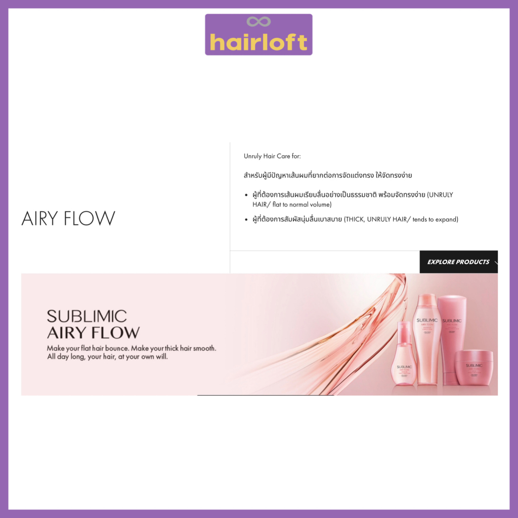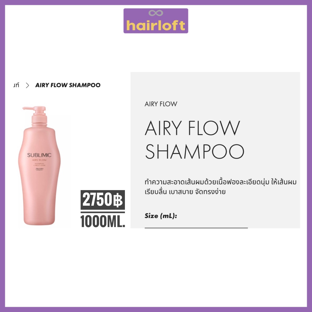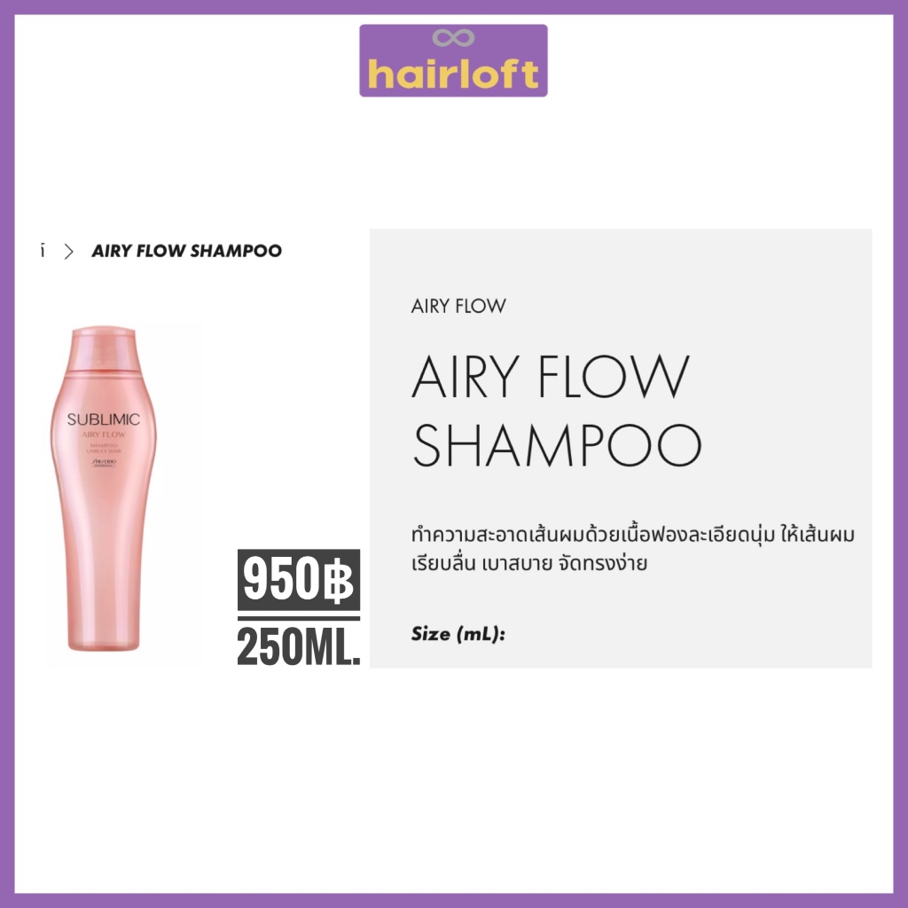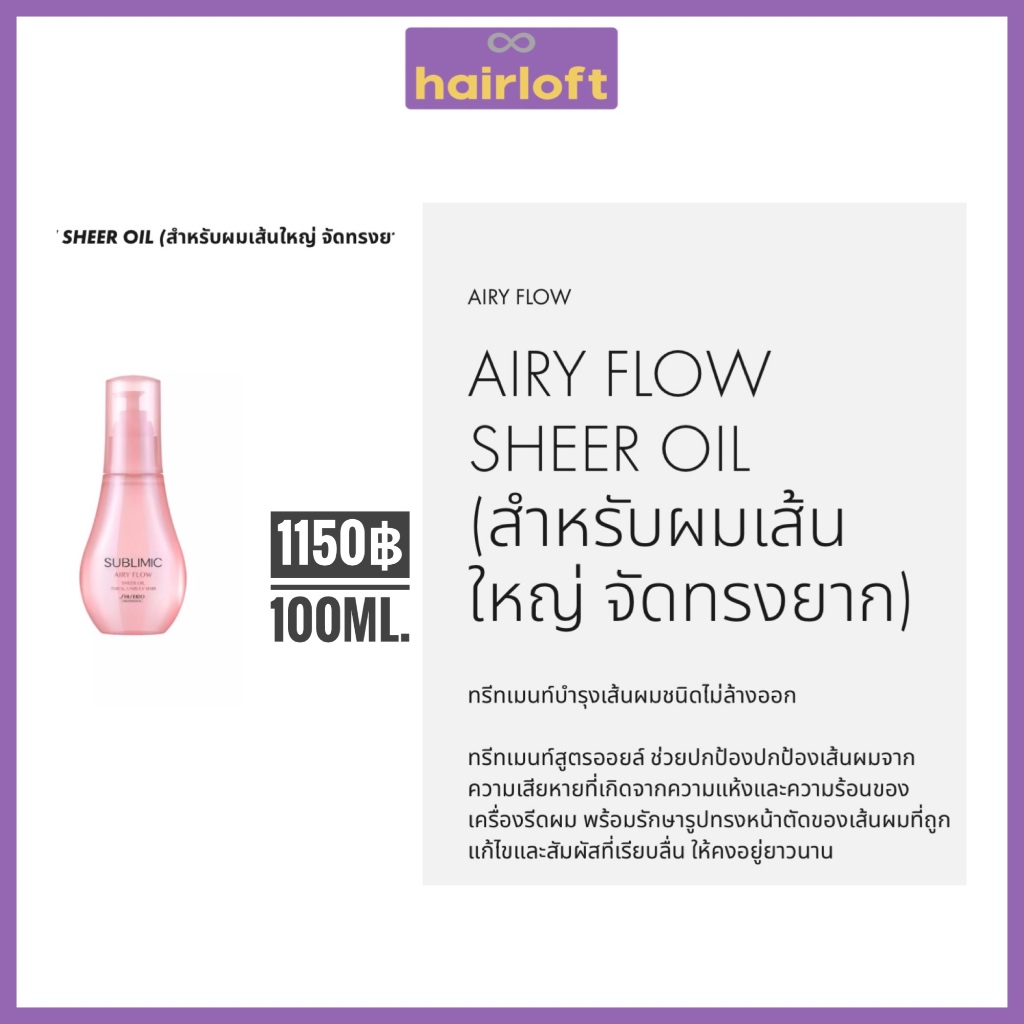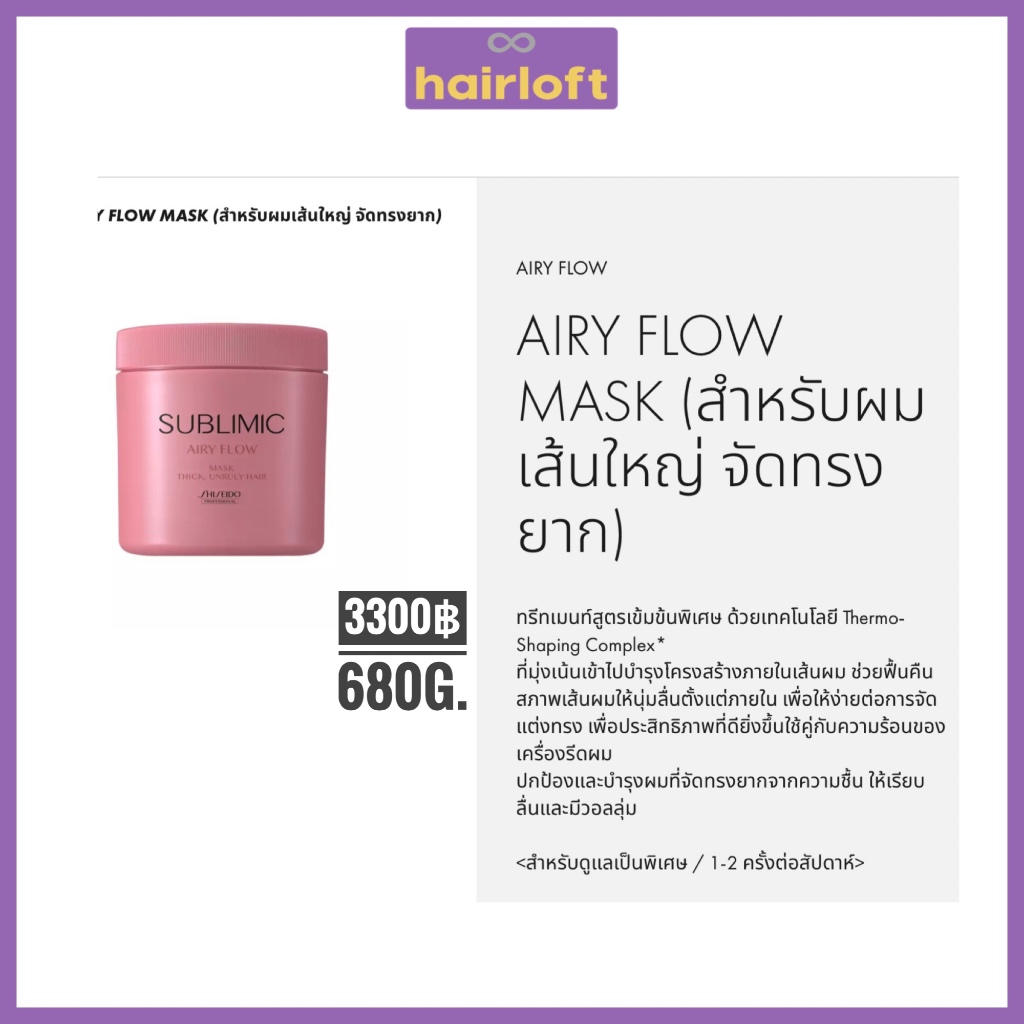 SHISEIDO SUBLIMIC AIRY FLOW ชิเซโด้ ซับลิมิก แอรี่ โฟลว์ สำหรับผมแห้ง ชี้ฟู จัดทรงยาก หยาบ แข็ง