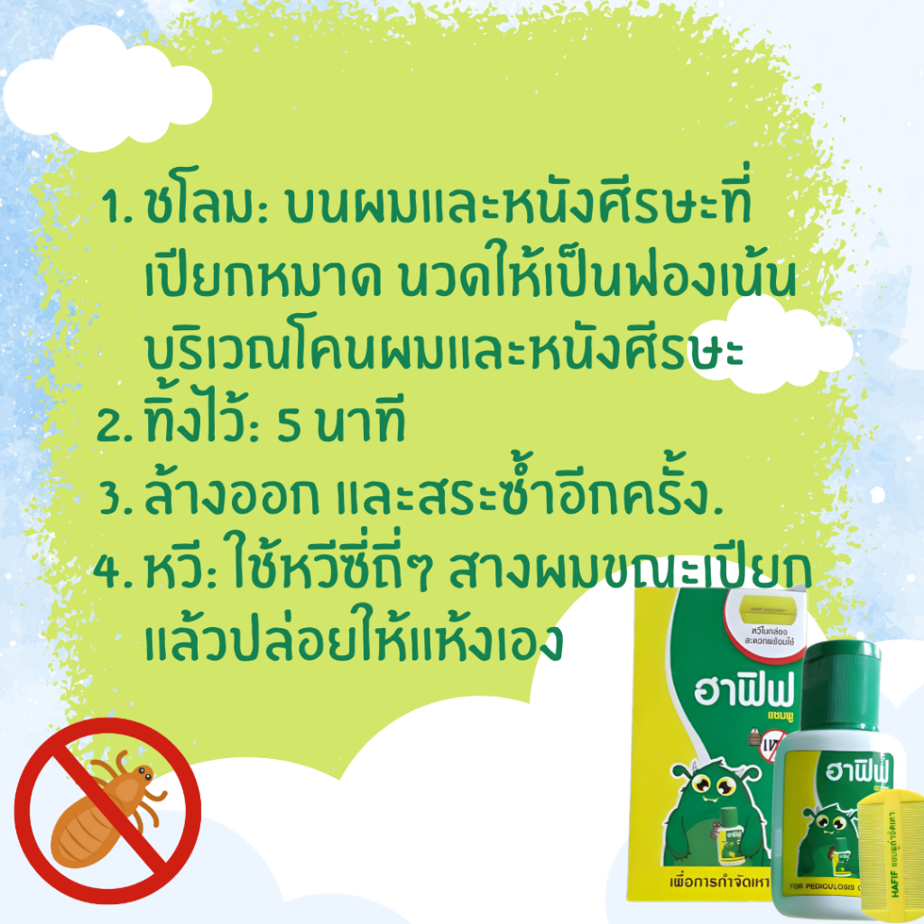 แชมพูกำจัดเหา ฮาฟิฟ Hafif แถมหวีซี่ถี่!!! 50มล. ยาสระผมกำจัดเหา ส่งฟรี