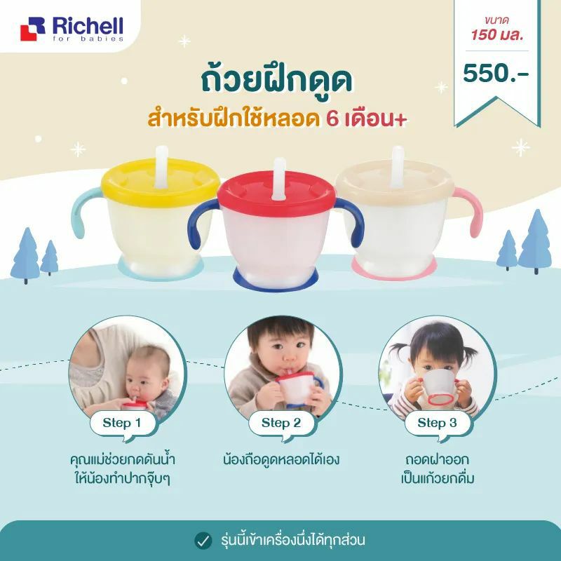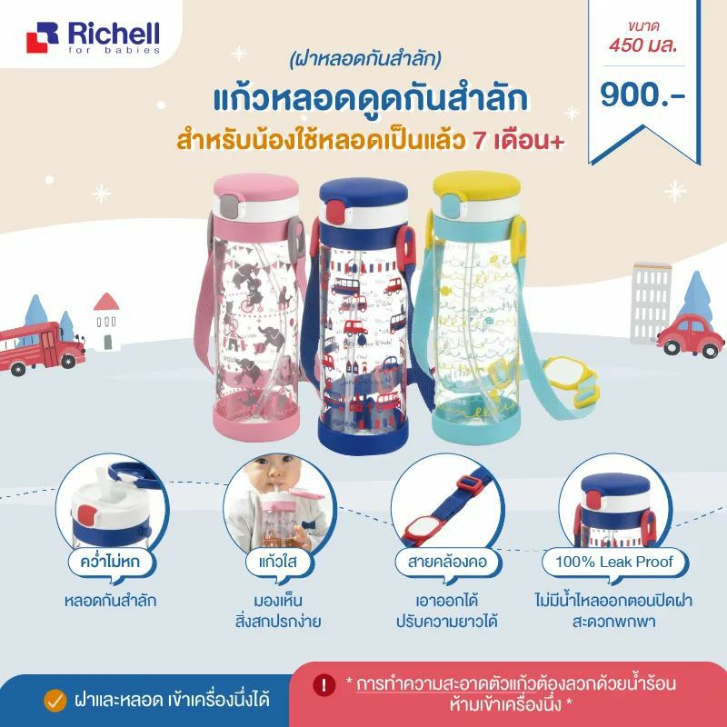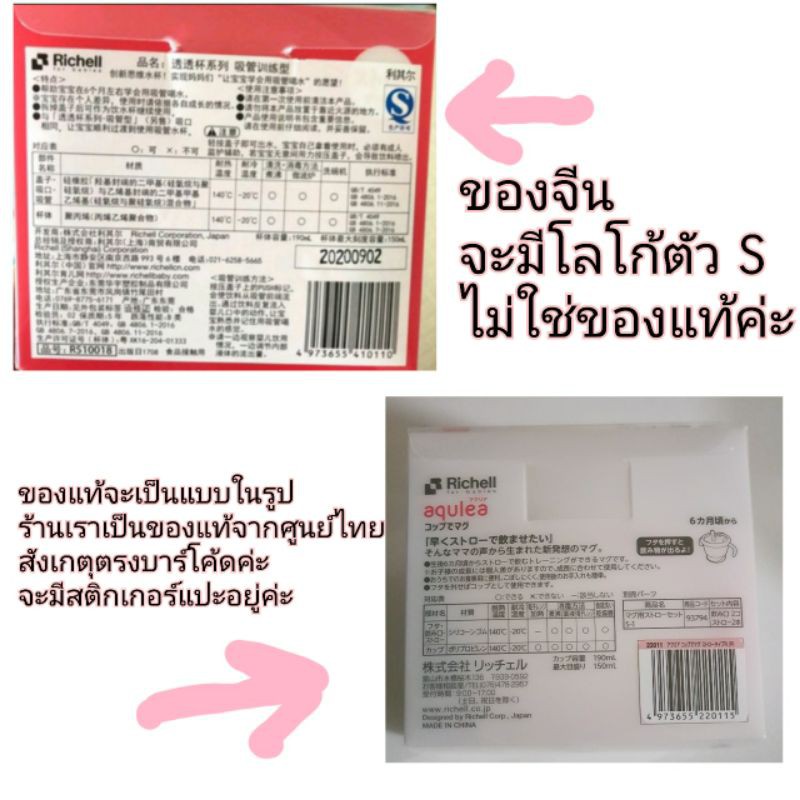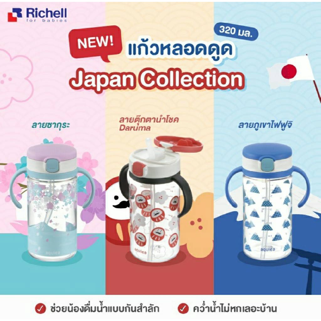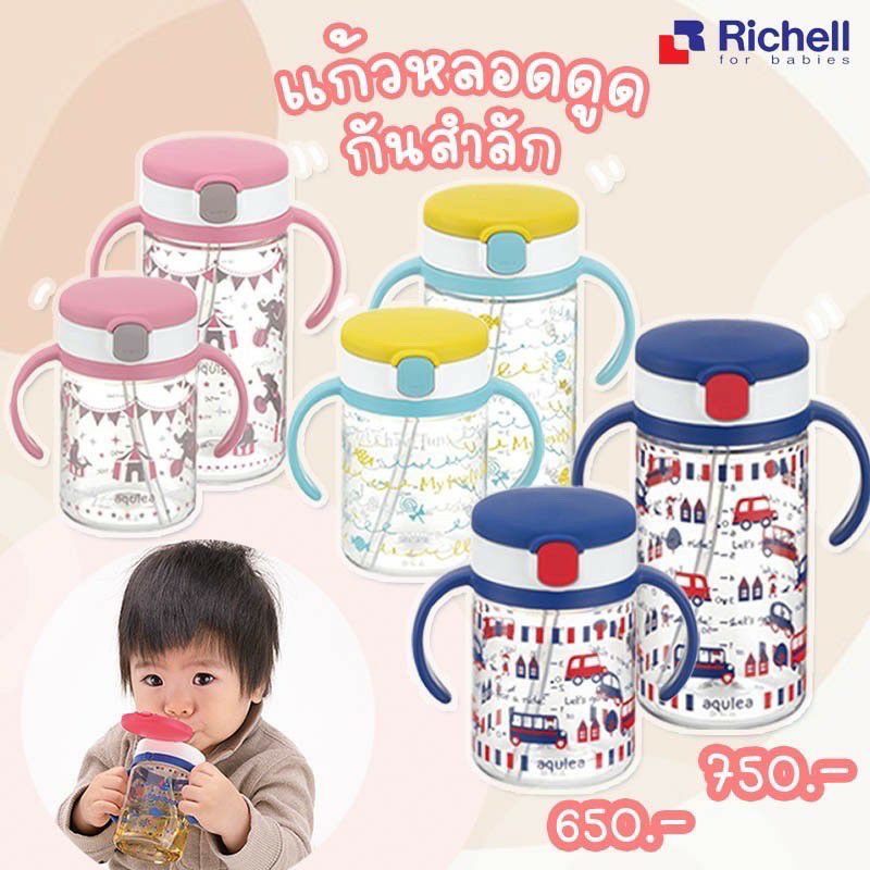 🔥ทักแชทลดเพิ่ม🔥 Richell แก้วหลอดดูดกันสำลักสำหรับเด็ก Aqulea ลายใหม่