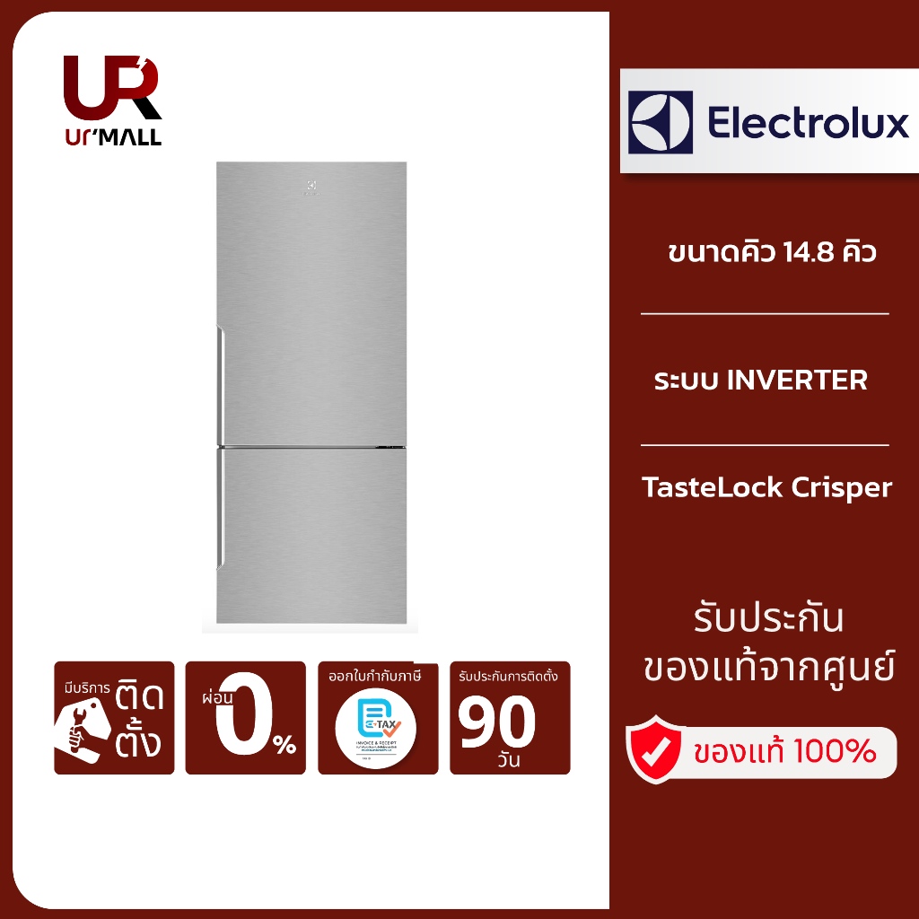 Electrolux ตู้เย็น 2 ประตู อินเวอร์เตอร์ รุ่น EBE4500B-A (14.8 คิว, 425 ลิตร) สี Arctic Siver