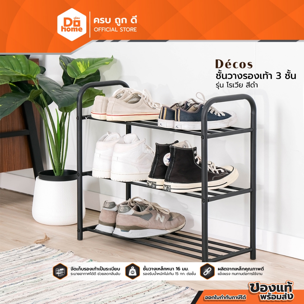 DECOS ชั้นวางรองเท้า 3 ชั้น รุ่น โรเวีย สีดำ [ไม่รวมประกอบ] |LAN|