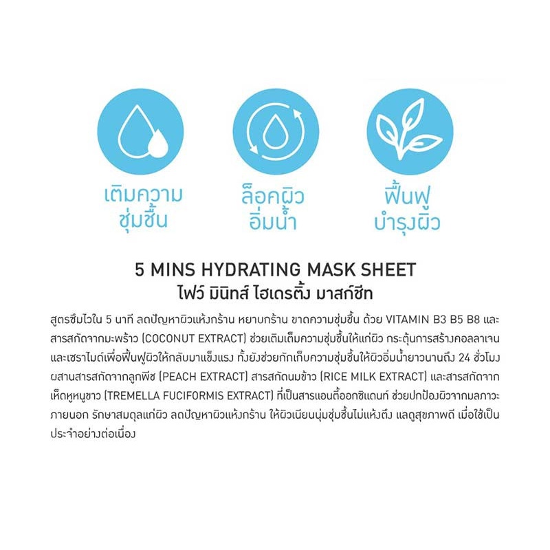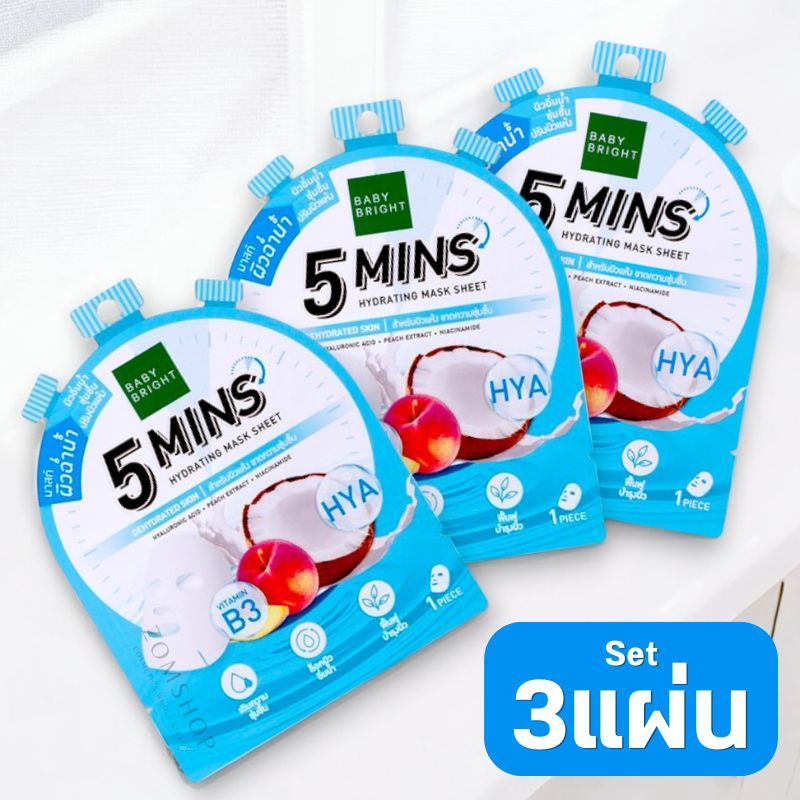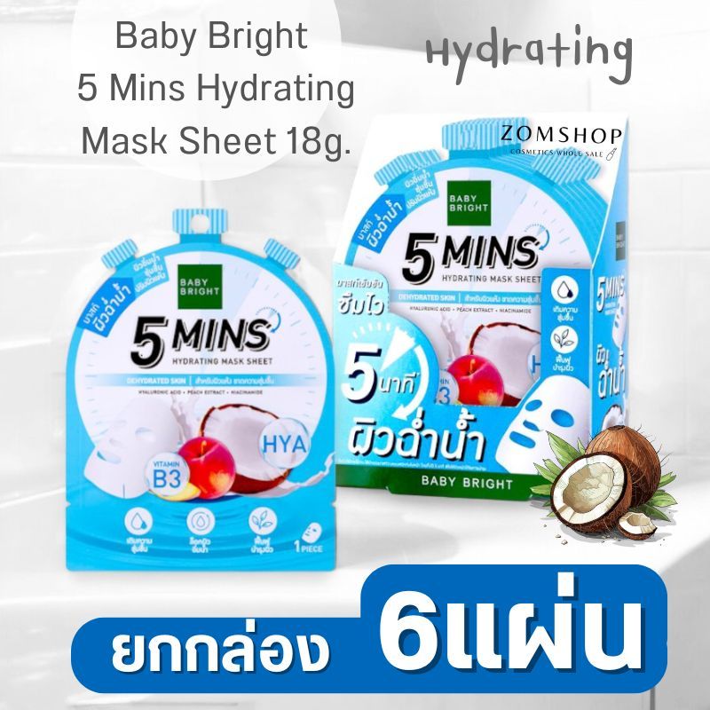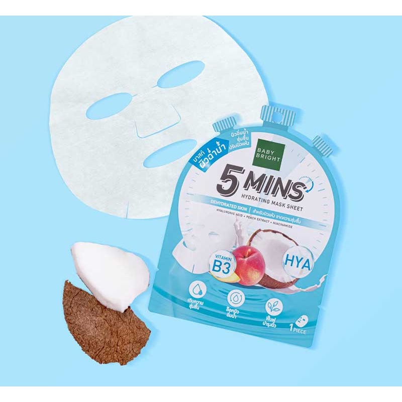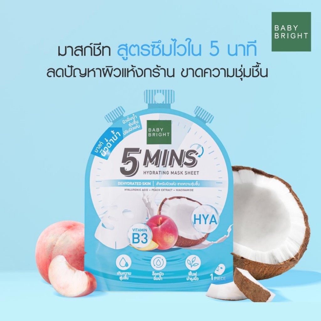 แผ่นมาส์กหน้า【ไฟว์มินิทส์มาสก์ชีท】สูตรไฮเดรติ้ง Baby Bright 5 Mins Hydrating Mask Sheet 18g.