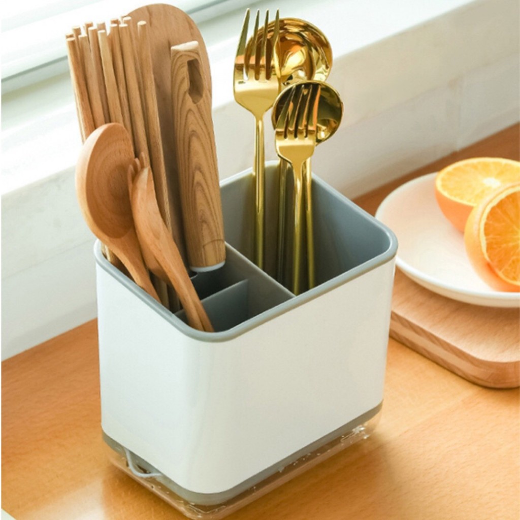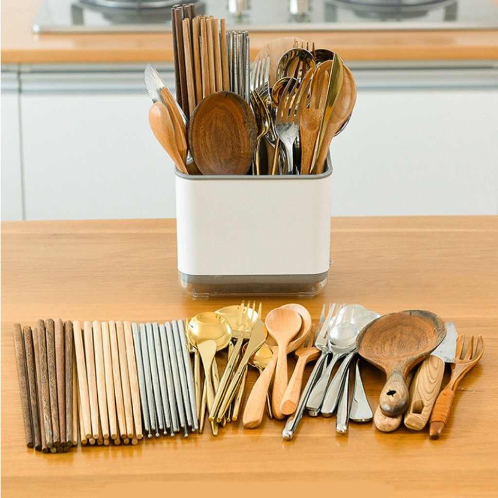 กล่องเก็บ 🍴ช้อน-ส้อม ตะเกียบ จัดเก็บอุปกรณ์ในครัว มีช่องระบายน้ำ ป้องกันเชื้อราและแบคทีเรีย ถอดล้างทำความสะอาดได้