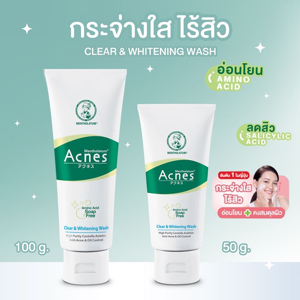 โฟมล้างหน้า เมนโทลาทั่ม แอคเน่ส์ สำหรับผิวเป็นสิว หน้ามัน Mentholatum Acnes 50/100 g.