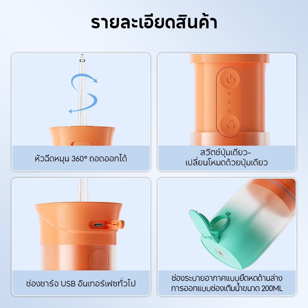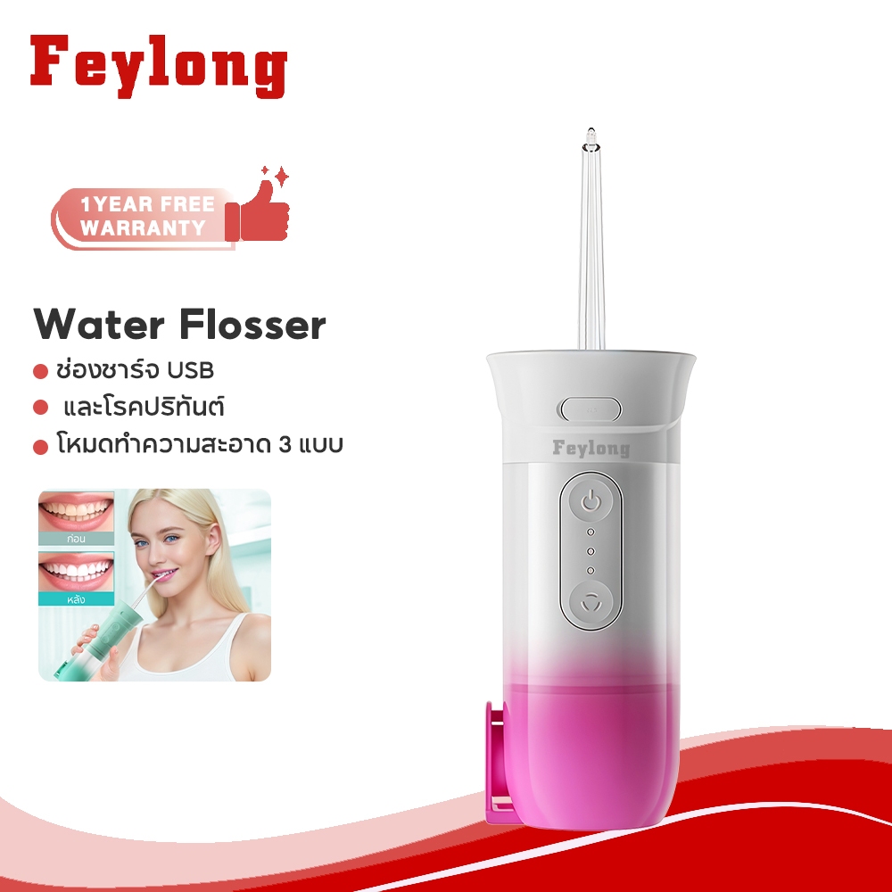 Feylong หมขัดฟันพลังน้ำ Water flosser เครื่องทำความสะอาดฟัน 200 มล เครื่องฉีดฟัน แปรงสีฟันไฟฟ้า IPX7 กันน้ำ