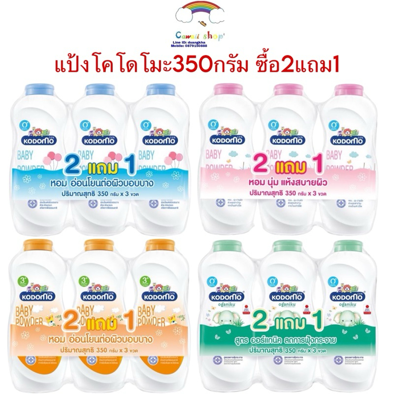 [แพ็ค 2แถม1] Kodomo โคโดโม แป้งเด็ก อ่อนโยน ไม่ระคายเคืองผิว (ขนาด 350x3 กรัม) บำรุงผิว ลดผดผื่น