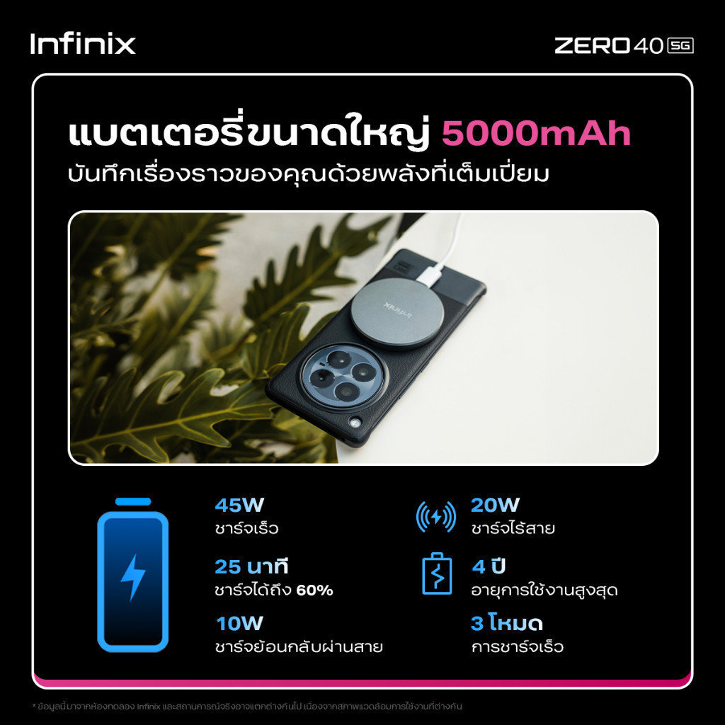 Infinix ZERO 40 5G 512+12GB(เพิ่มแรมสูงสุด 24GB) I Prostable 4K Vlog 108MP OIS+50MP Ultra-Wide I ชิปเซ็ตD8200 Ultimate5G