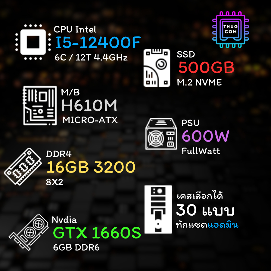 Intel I5-12400F I GTX 1660Super 6GB I H610M I DDR4 16GB 3200 I M.2 Nvme 500GB I 600W