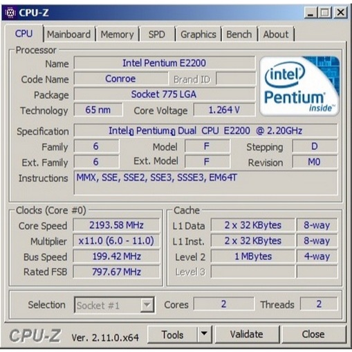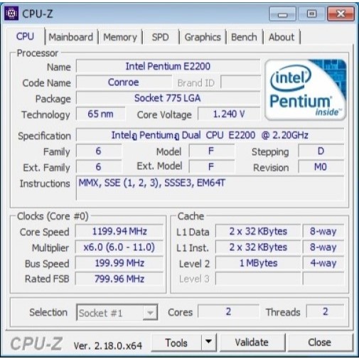 Intel Pentium Dual Core E2200 2.2GHz 2Cores 2Threads Socket 775