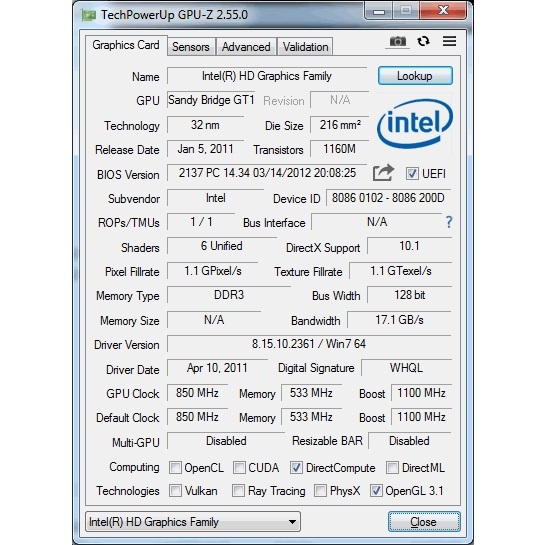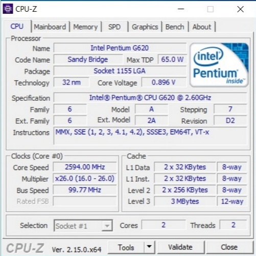 Intel Pentium G620 2.6GHz 2Cores 2Threads Socket1155 Gen2