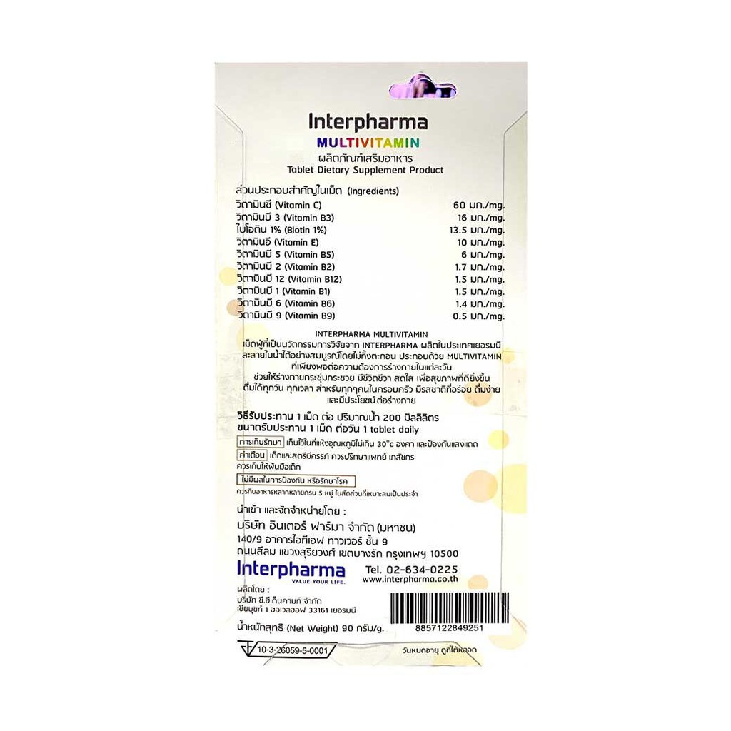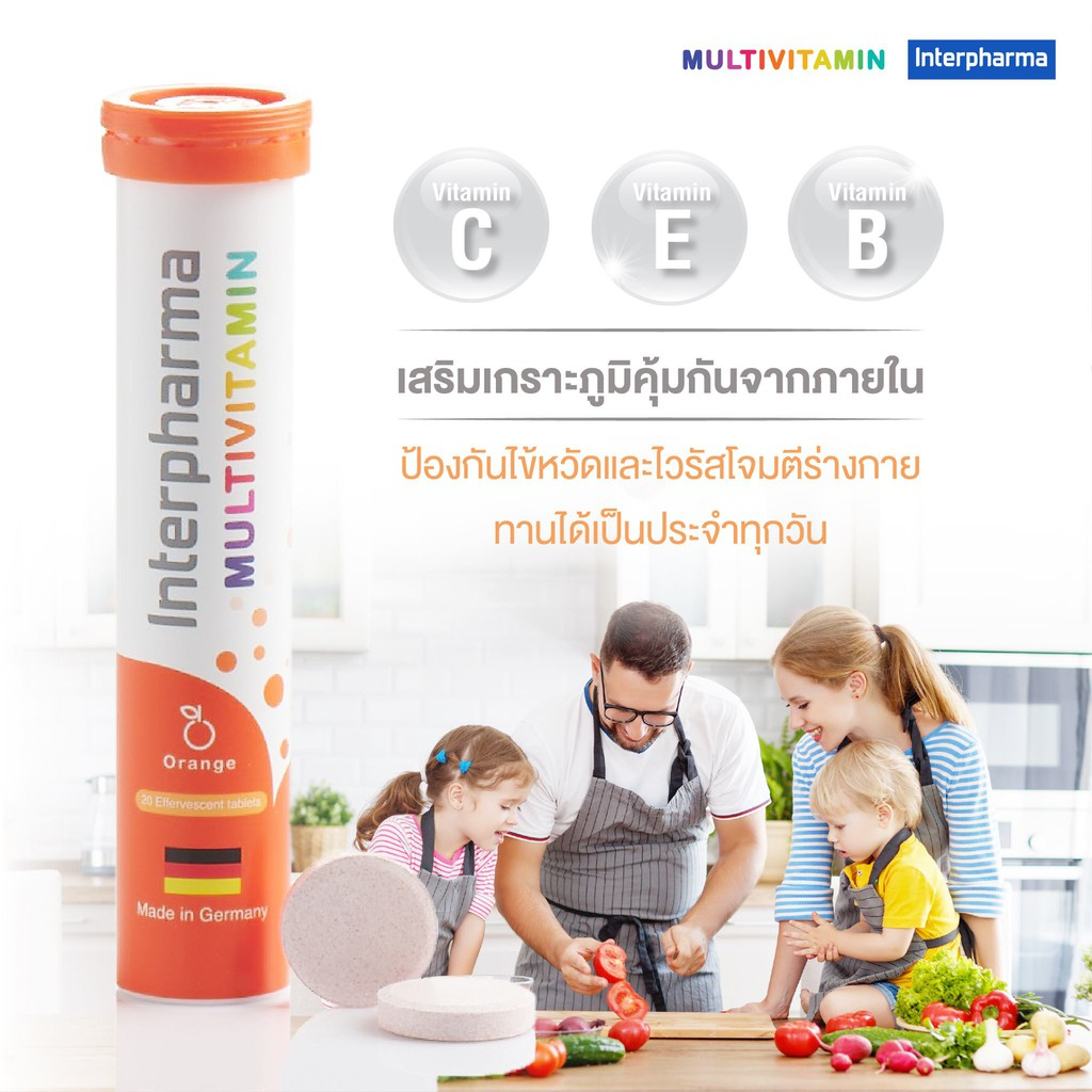 Interpharma Multivitamin 20 เม็ด ผลิตภัณฑ์วิตามินรวมแบบเม็ดฟู่ (สีส้ม) 365wecare