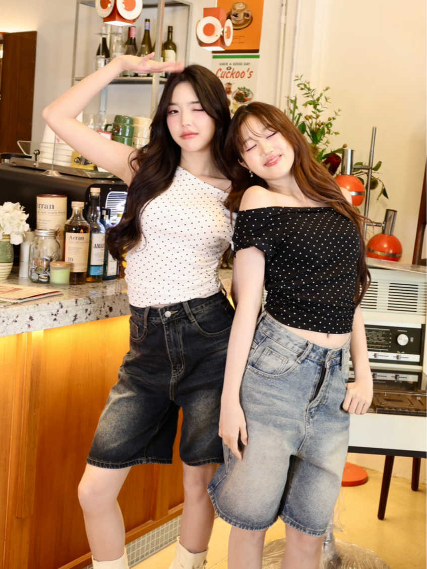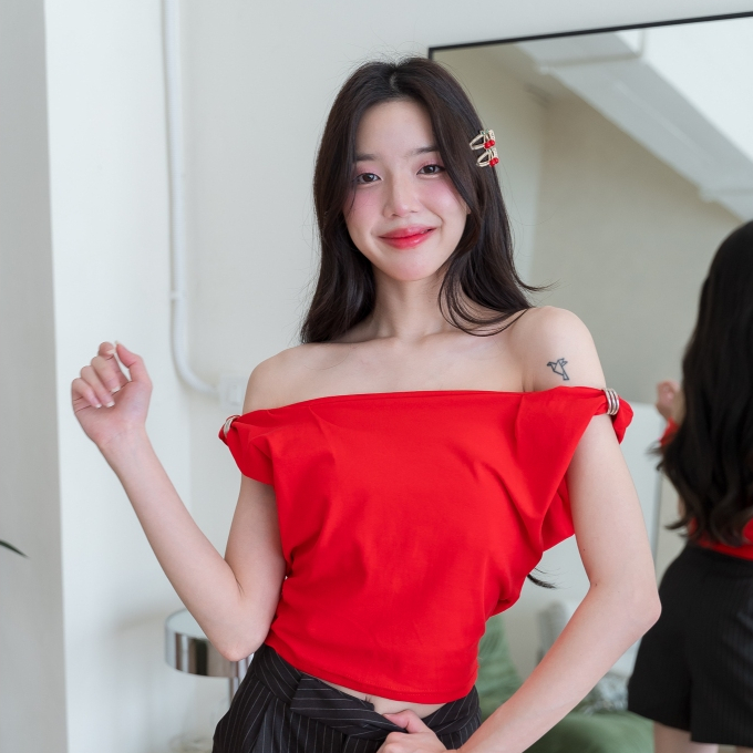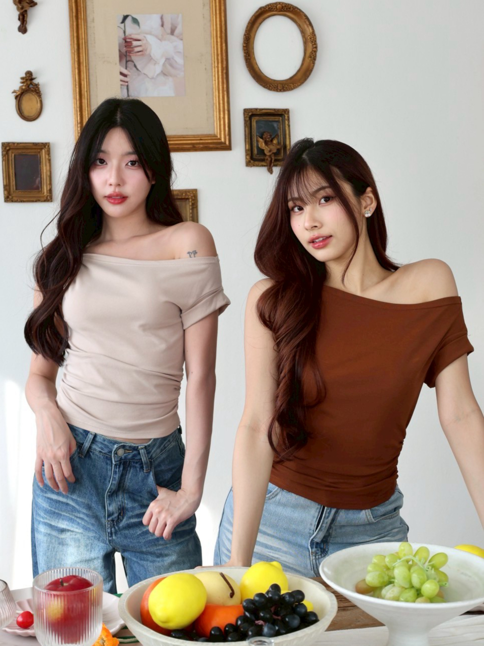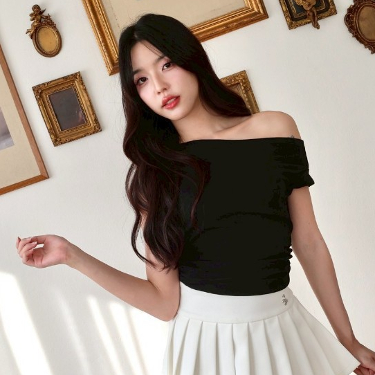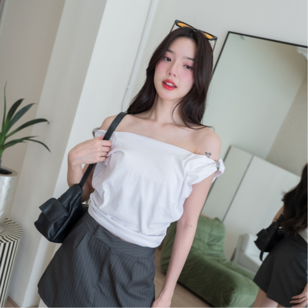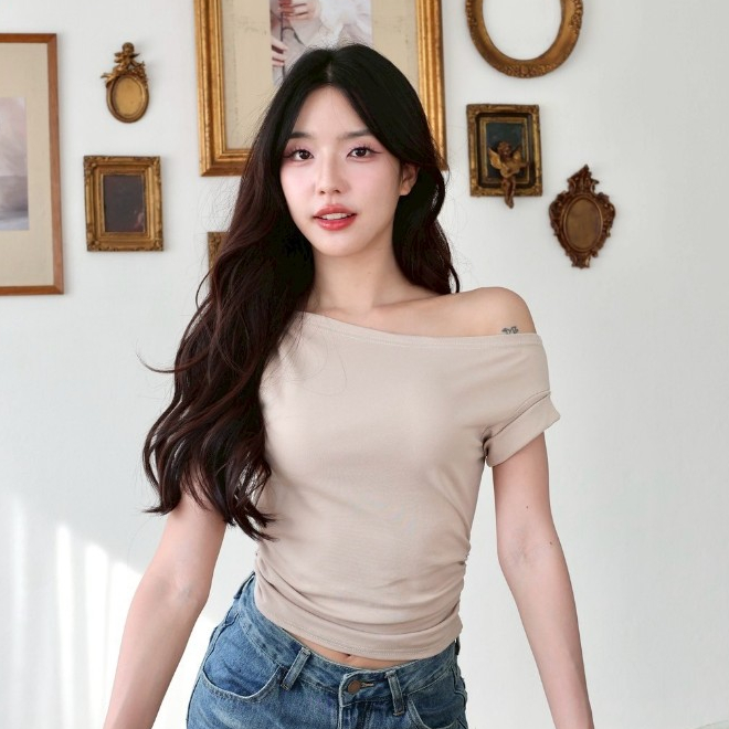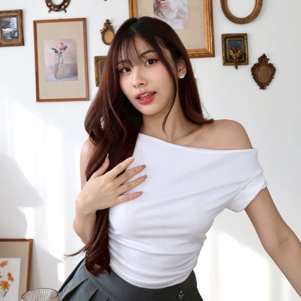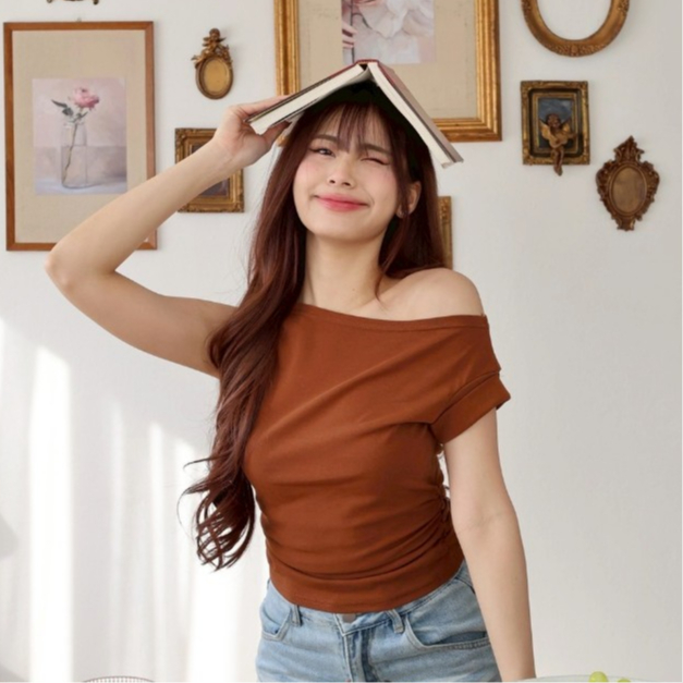 JARINYA เสื้ อปาดไหล่ ดีเทลเก๋มากเนื้อผ้ายืดเกรดดี (T636)
