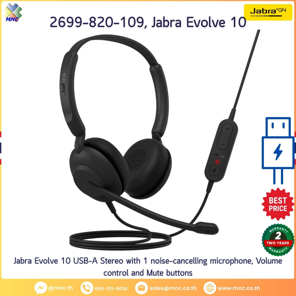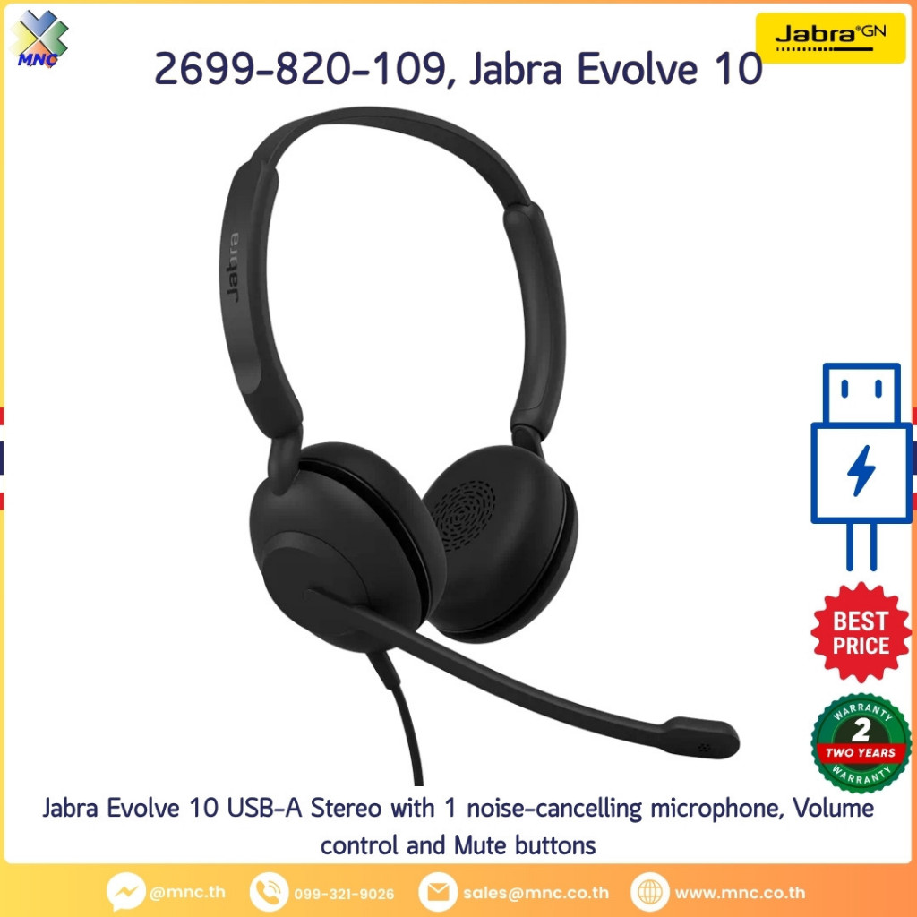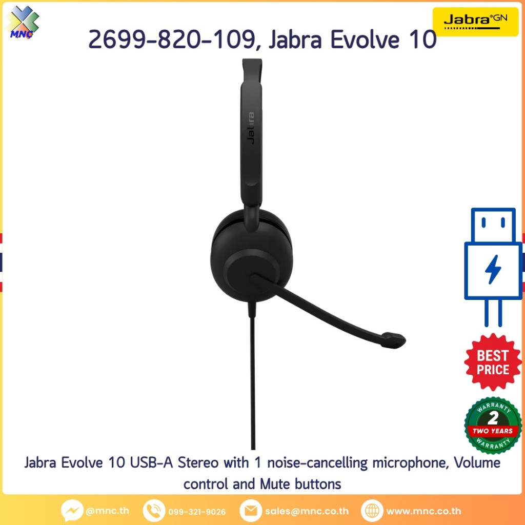 JBA-2699-820-109, Jabra Evolve 10 USB-A หูฟังสเตอริโอ ไมค์กันเสียงรบกวน มีปุ่มปรับเสียง