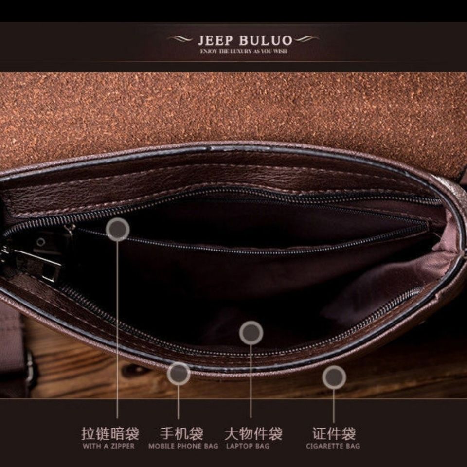 JEEP BULUO Man's Bag 2PC/Set Men Leather Messenger Shoulder Bags Business Crossbody Casual Bags Famo DGJB