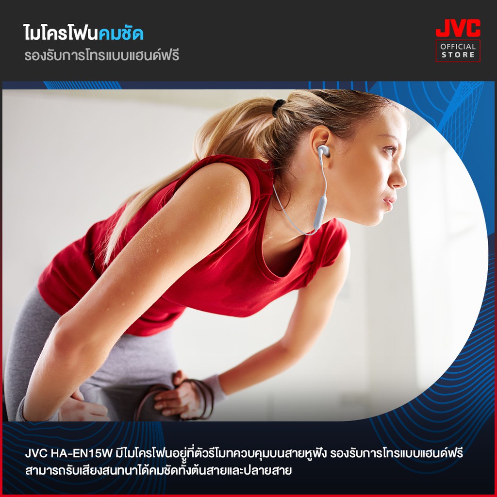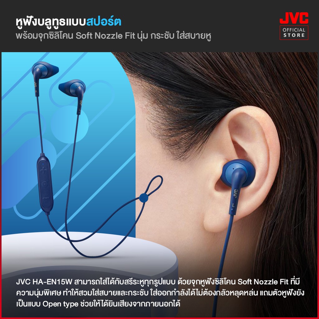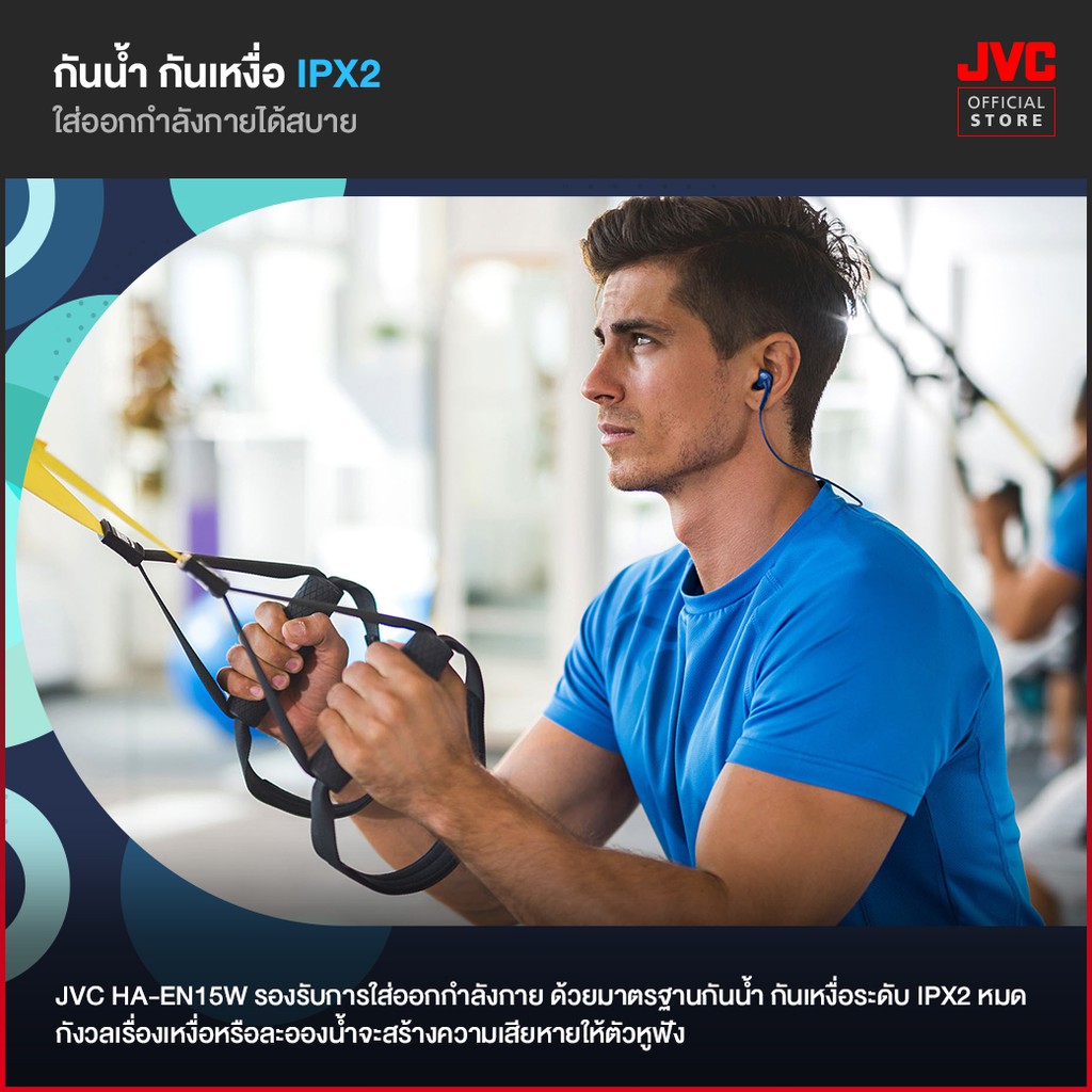 JVC HA-EN15W หูฟังบลูทูธออกกำลังกาย จุกหูฟัง Soft Nozzle Fit ใส่สบาย เบสแน่น กันน้ำ IPX2