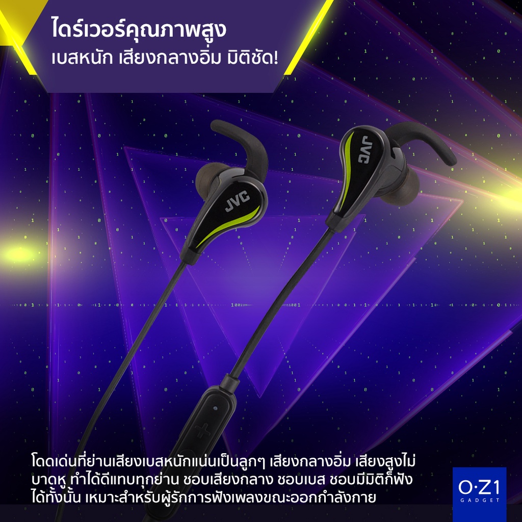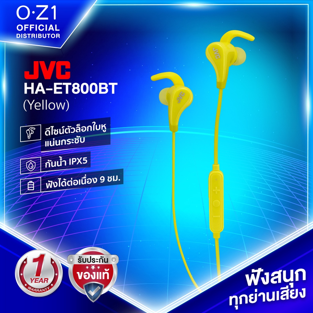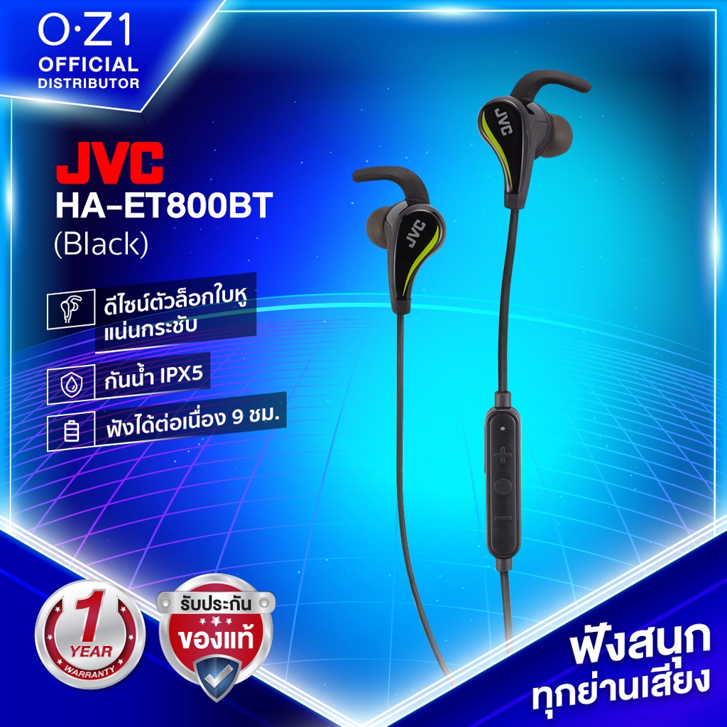 JVC HA-ET800BT หูฟังบลูทูธสปอร์ตอินเอียร์ มีก้านล็อกด้านในหู กันน้ำ IPX5 แบตฯ อึด 9 ชม.