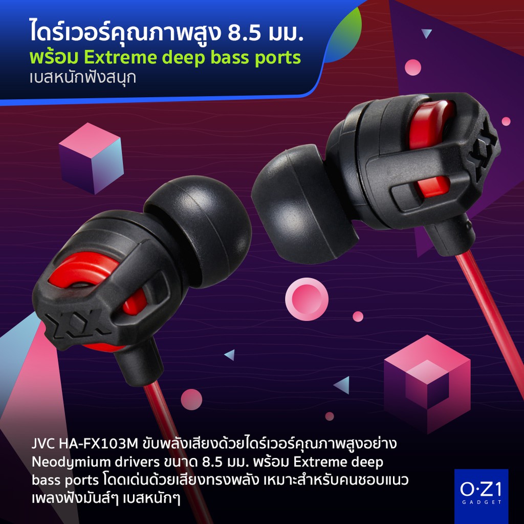 JVC HA-FX103M หูฟังอินเอียร์มีสาย พร้อมไมค์ เบสแน่น คุยชัด [มาตรฐานญี่ปุ่น]