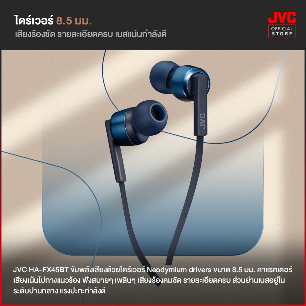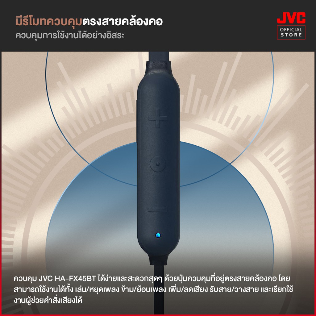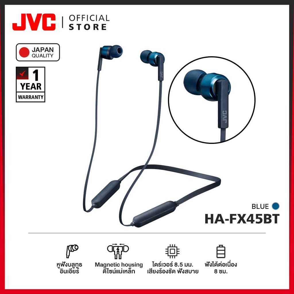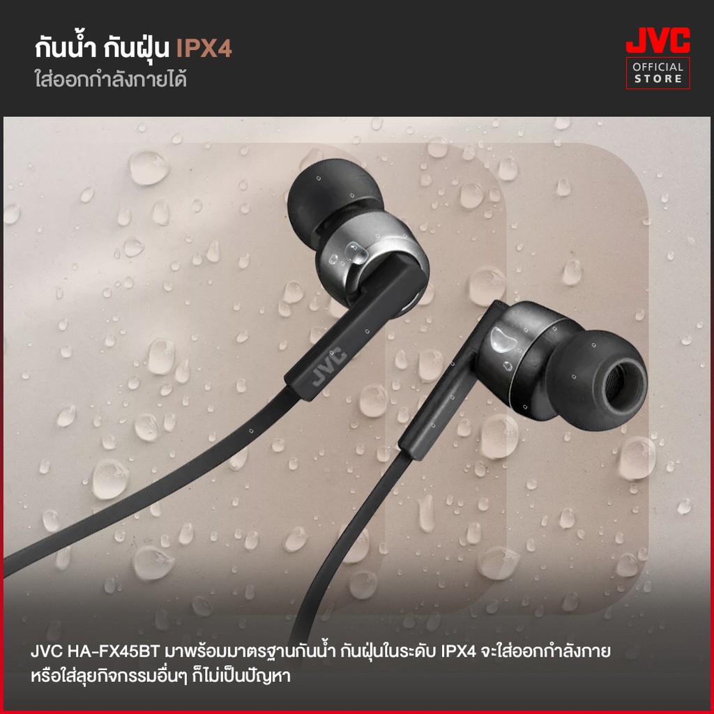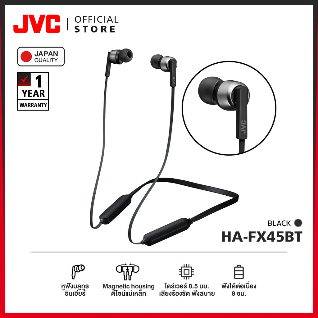 JVC HA-FX45BT หูฟังบลูทูธอินเอียร์ มีสายคล้องคอ พลังเสียงขั้นสูง กันน้ำ IPX4