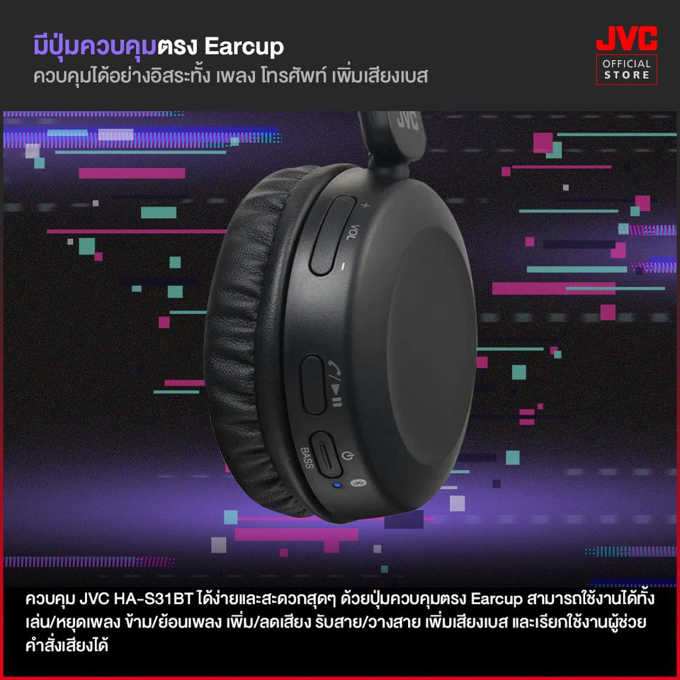 JVC HA-S31BT สี Black หูฟังไร้สายแบบครอบหู ใส่สบาย เเบต 17 ชม. พร้อม bass boost function มาตรฐานประเทศญี่ปุ่น