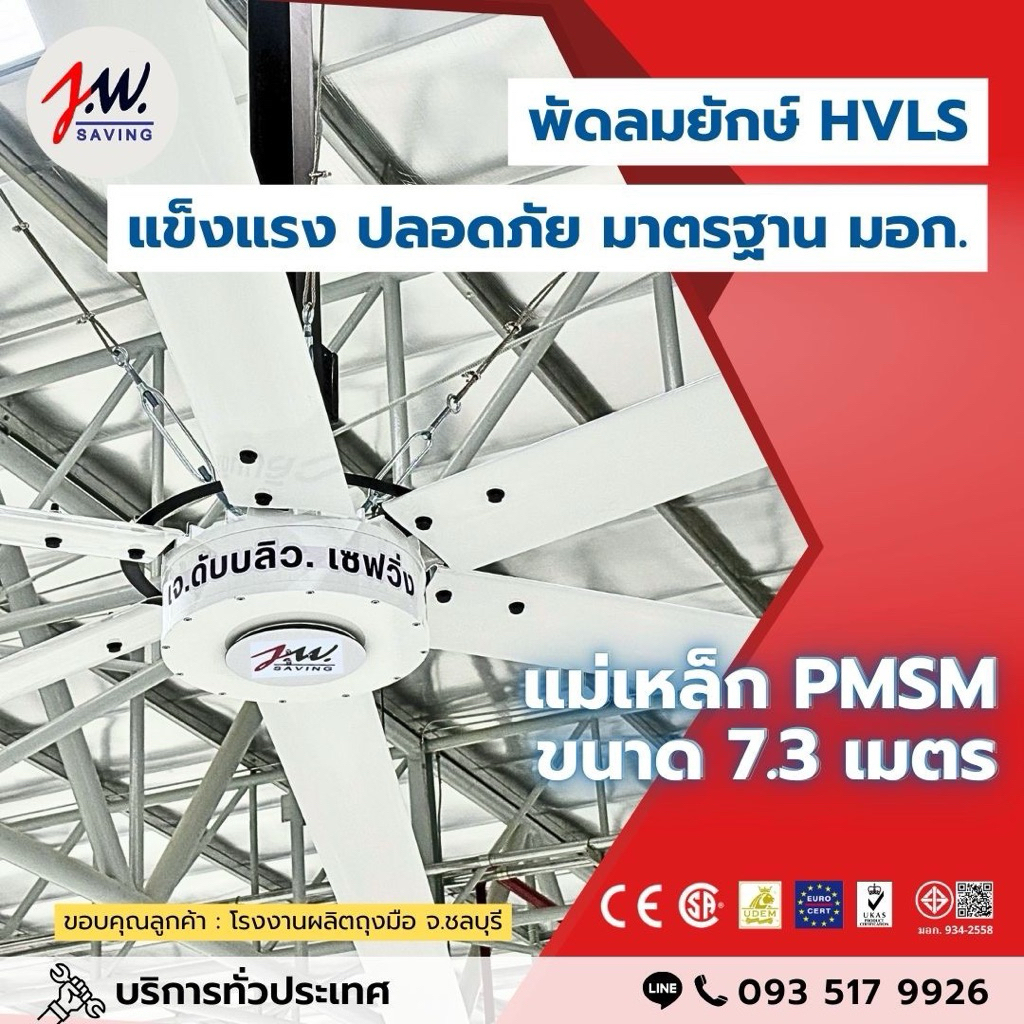 JWSAVING พัดลมยักษ์ 7.3 เมตร แบบแขวนเพดาน สีขาว มอเตอร์แม่เหล็กไฟฟ้า